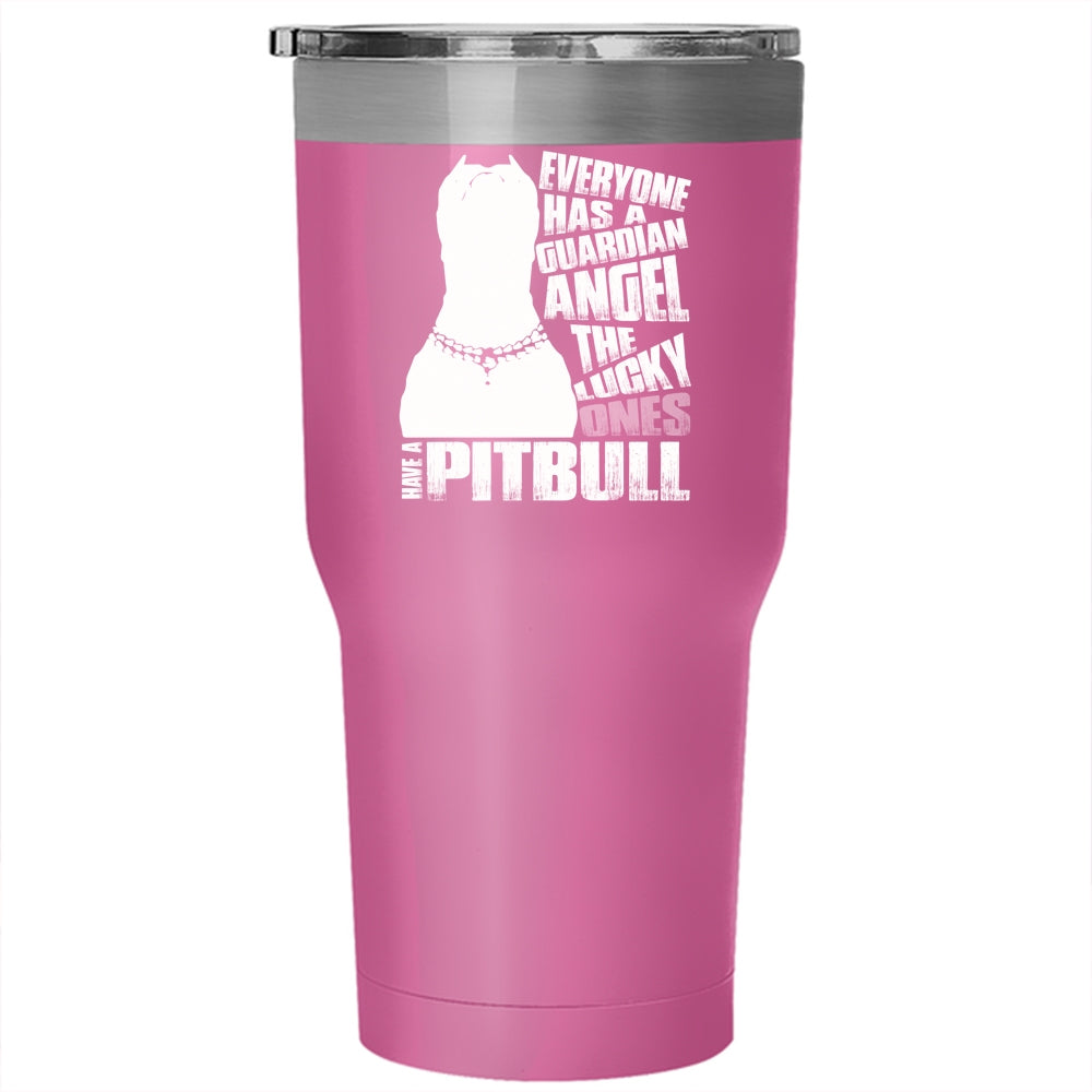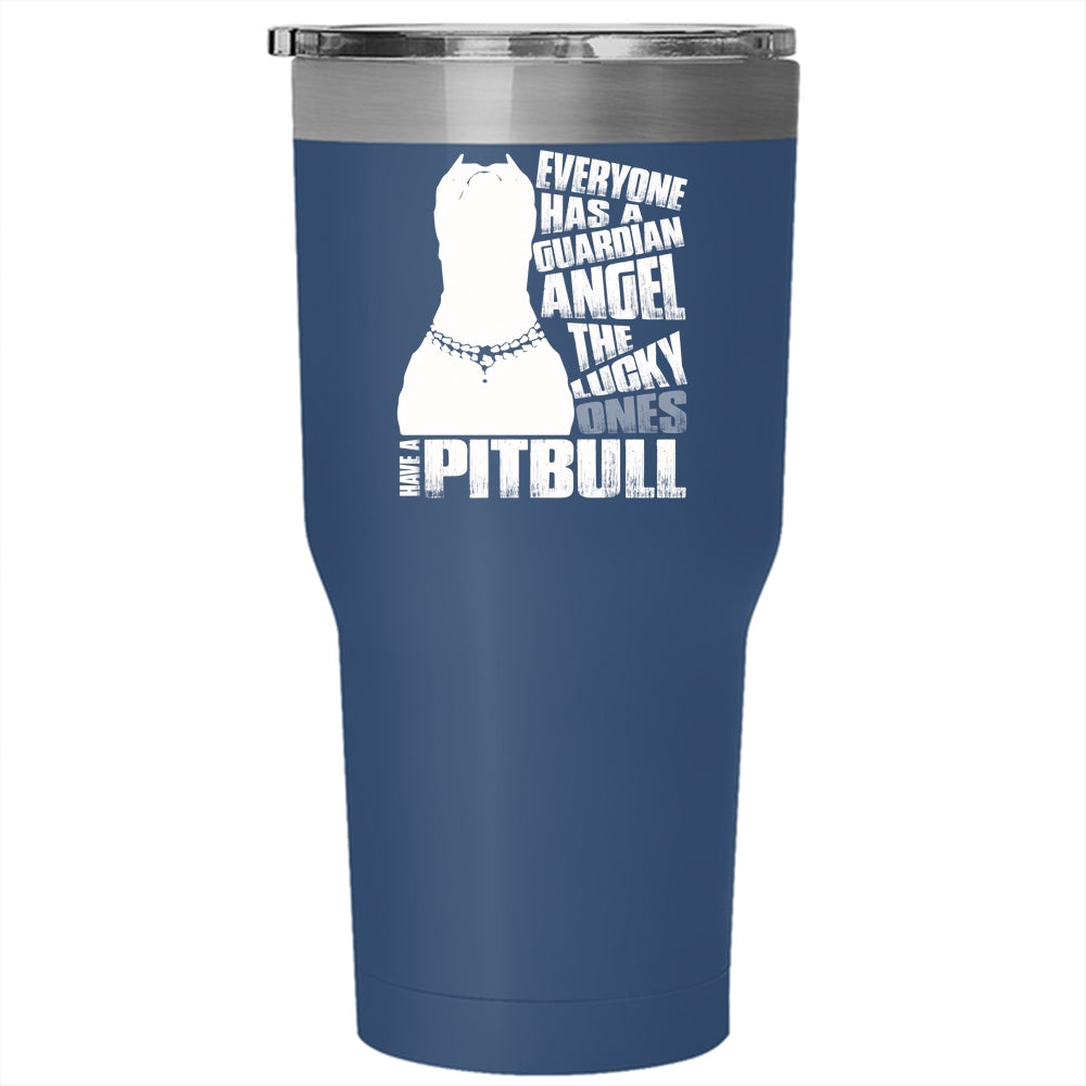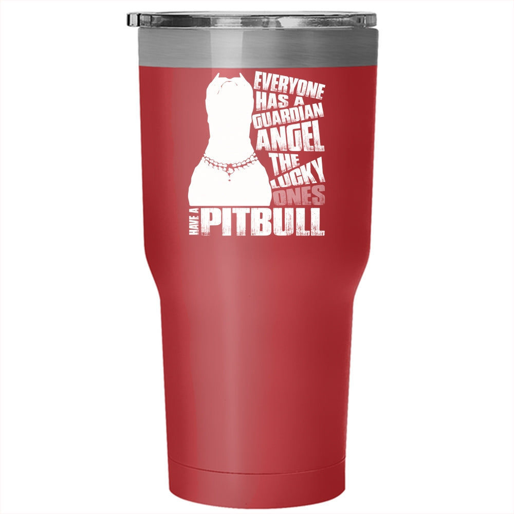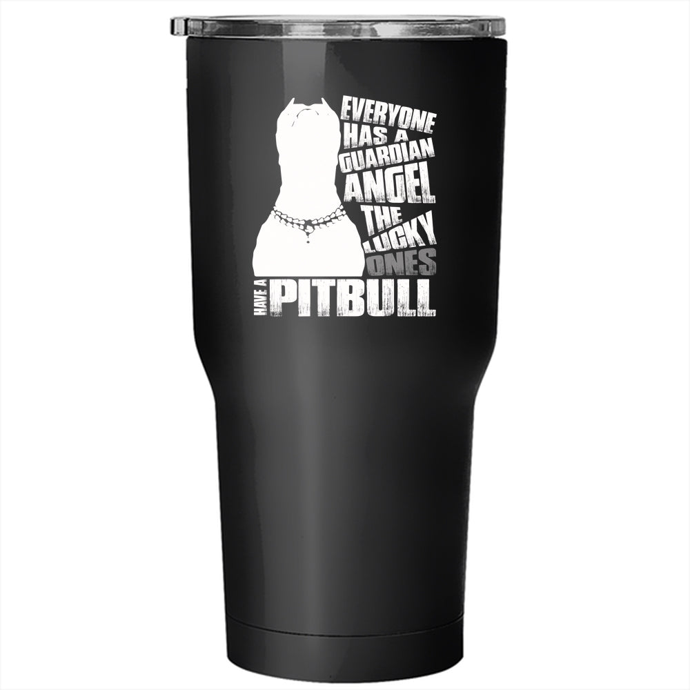 Everyone Has A Guardian Angel Tumbler 30 oz Stainless Steel, The Lucky Ones Have A Pitbull Travel Mug