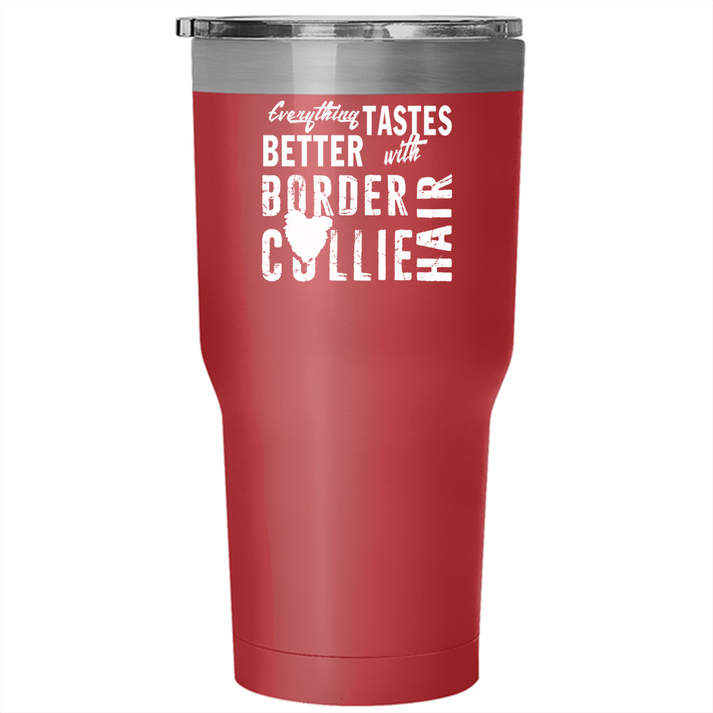Everything Tastes Better With Border Collie Hair Tumbler 30 oz Stainless Steel, Cute Travel Mug