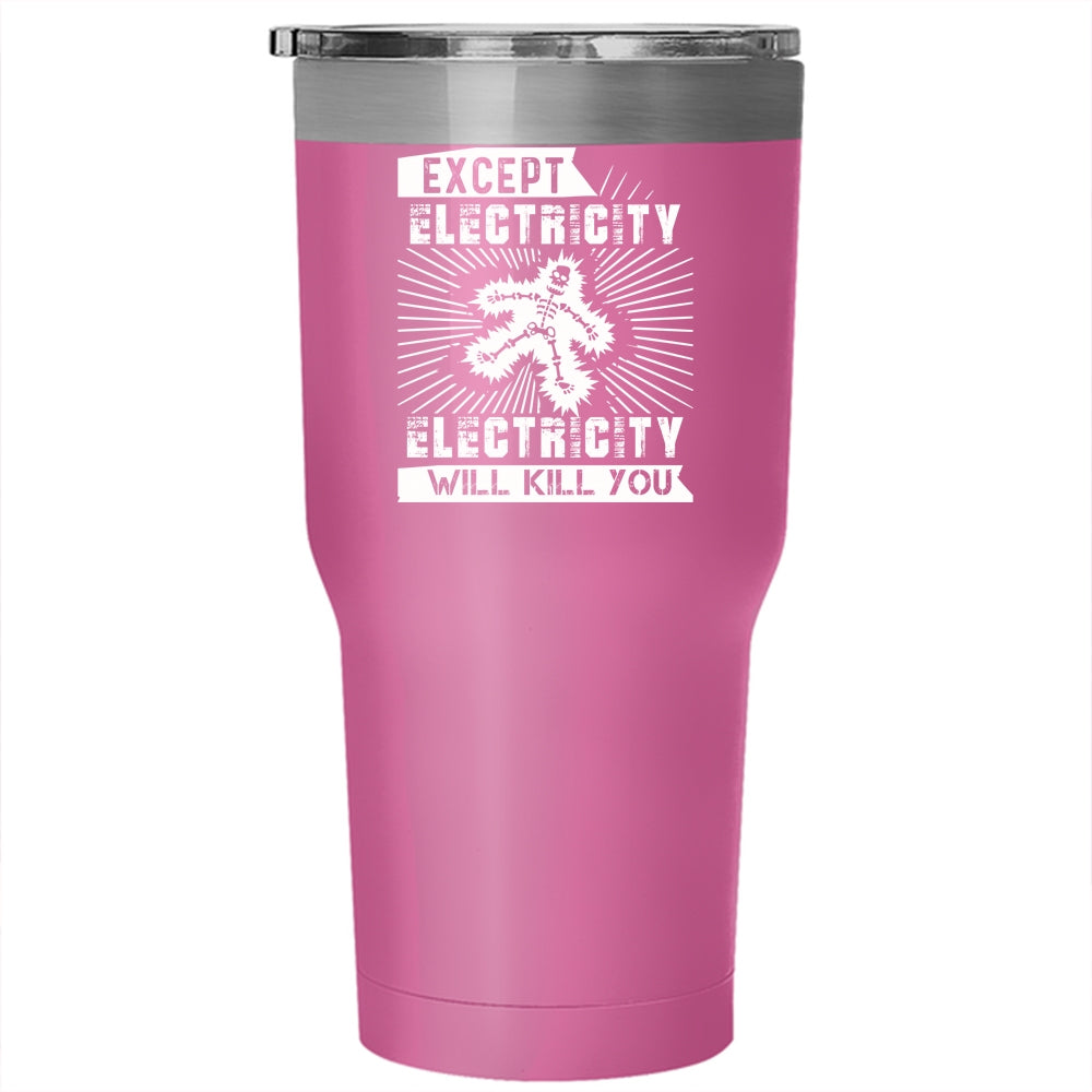 Except Electricity Tumbler 30 oz Stainless Steel, Funny Electricians Travel Mug