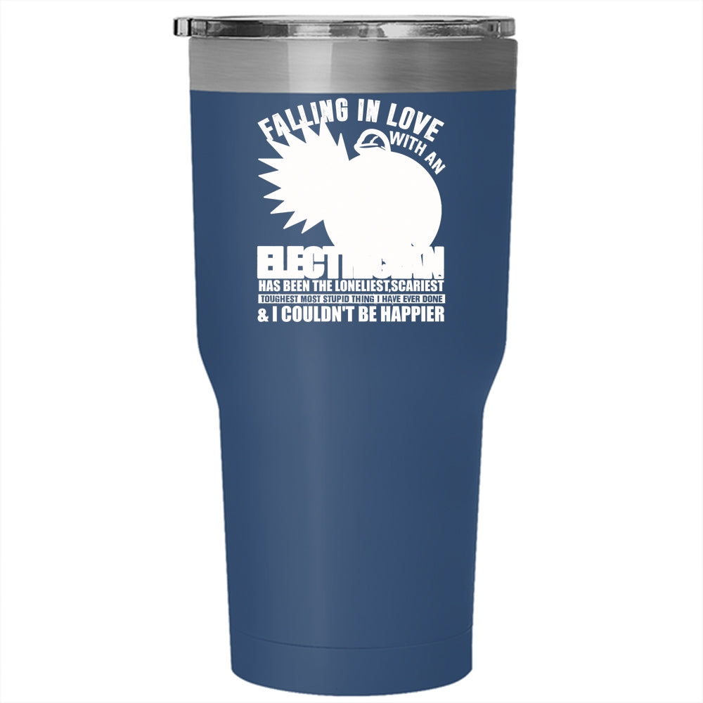 Falling In Love With An Electrician Tumbler 30 oz Stainless Steel, I Love My Electrician Travel Mug
