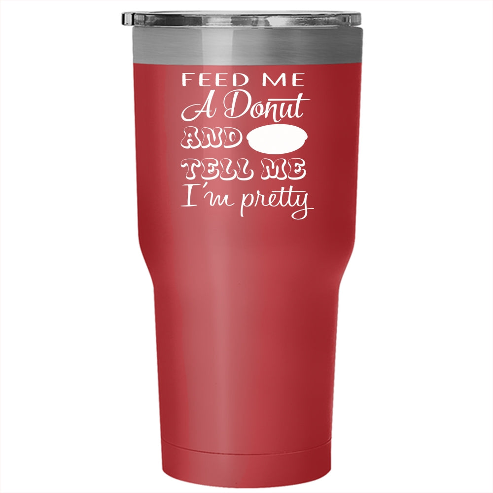Feed Me A Donut And Tell Me I'm Pretty Tumbler 30 oz Stainless Steel, Cute Donut Travel Mug