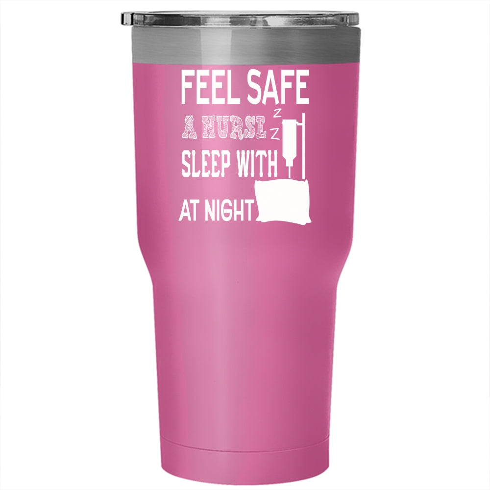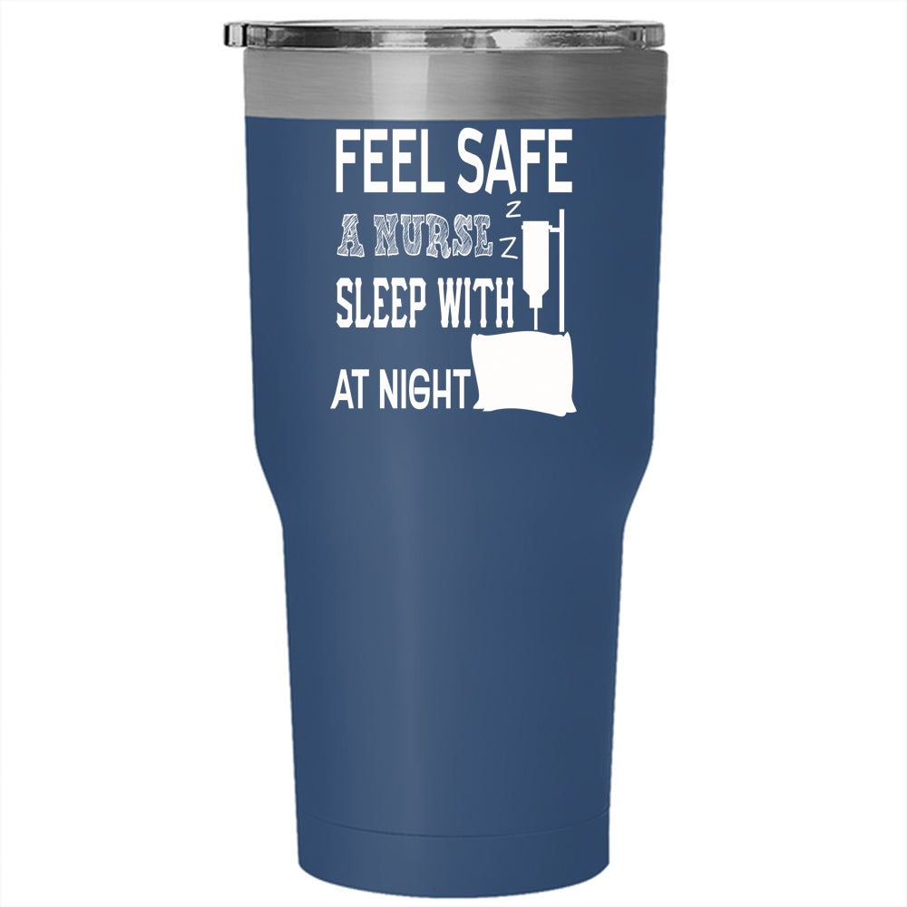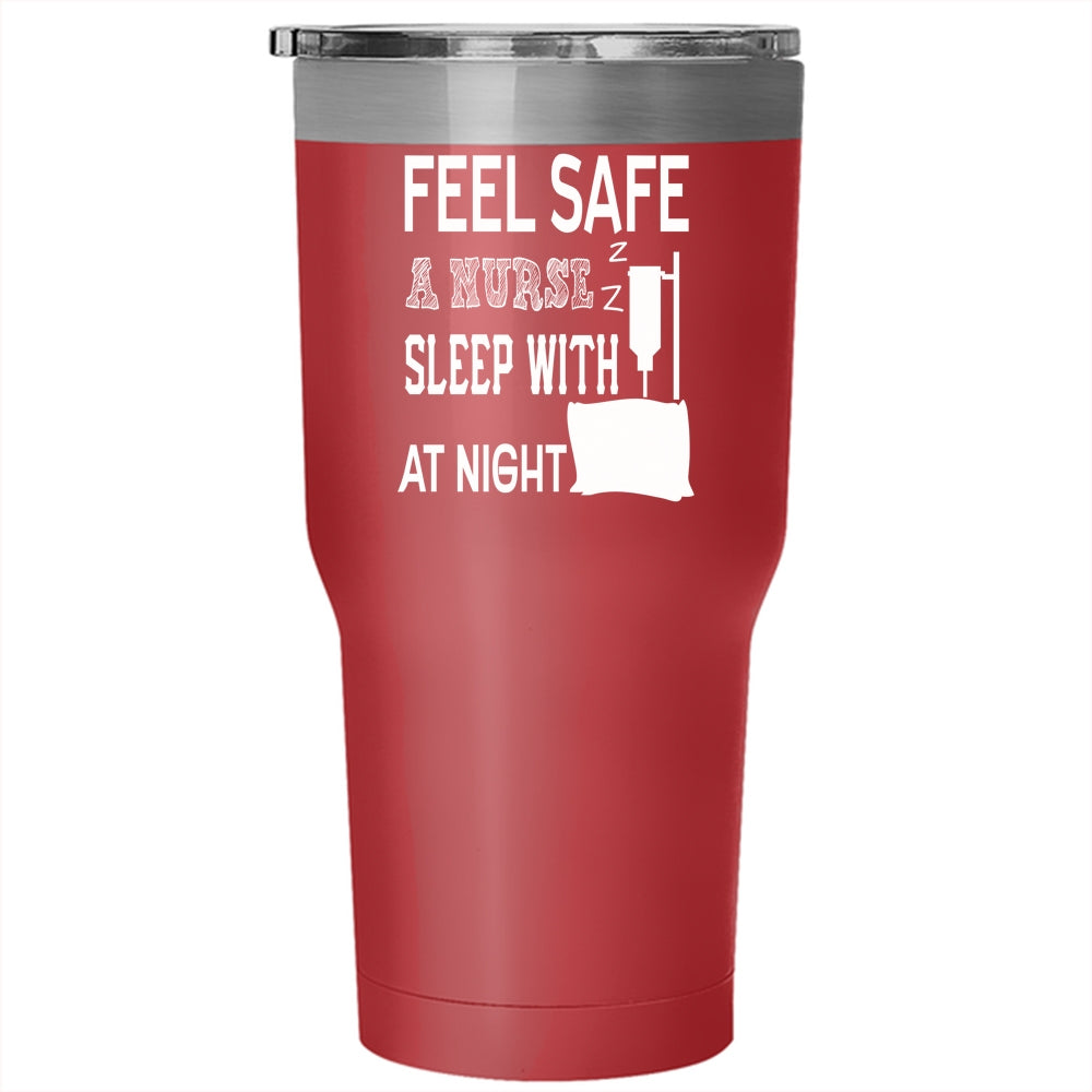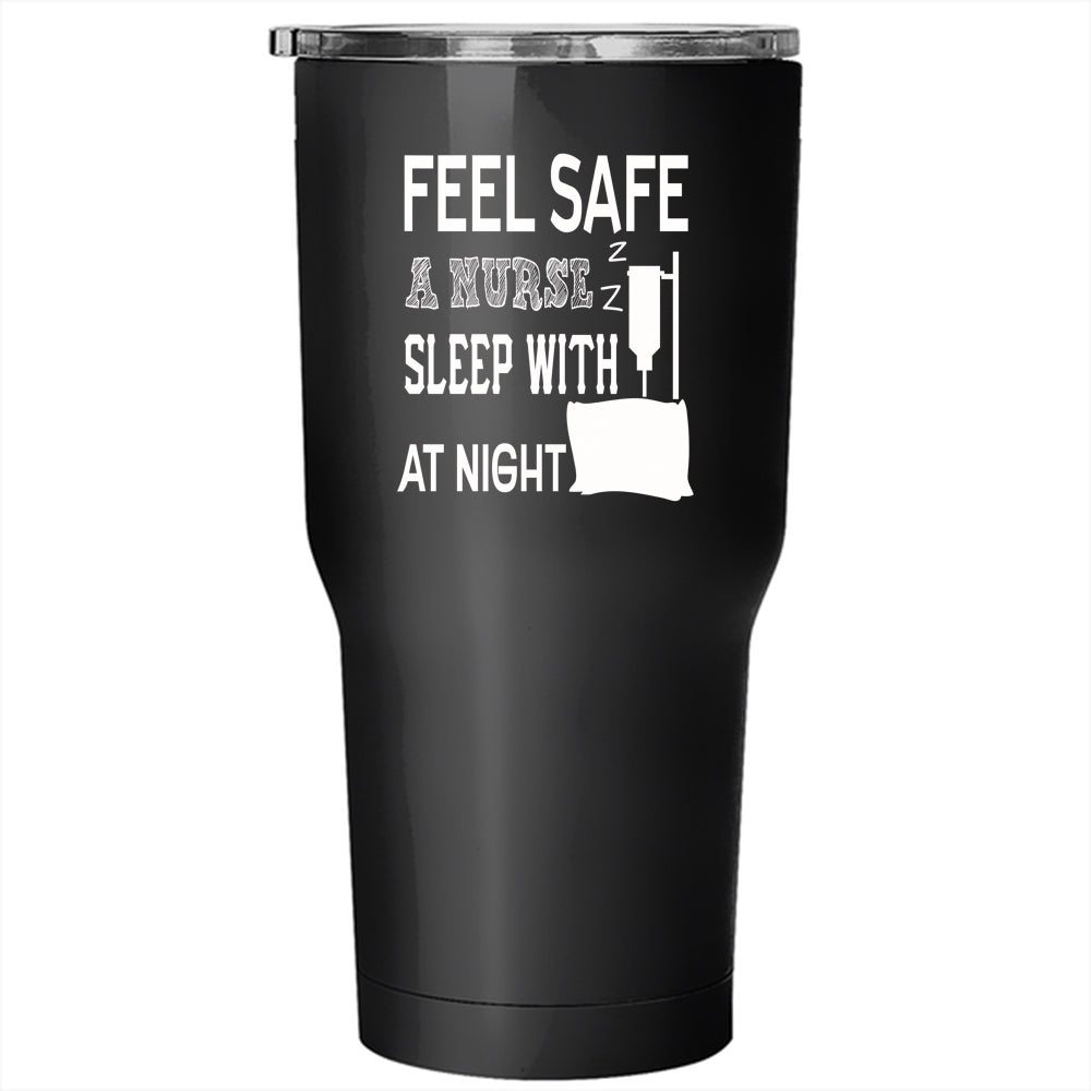 Feel Safe At Night Sleep With A Nurse Tumbler 30 oz Stainless Steel, Funny Nusres Travel Mug