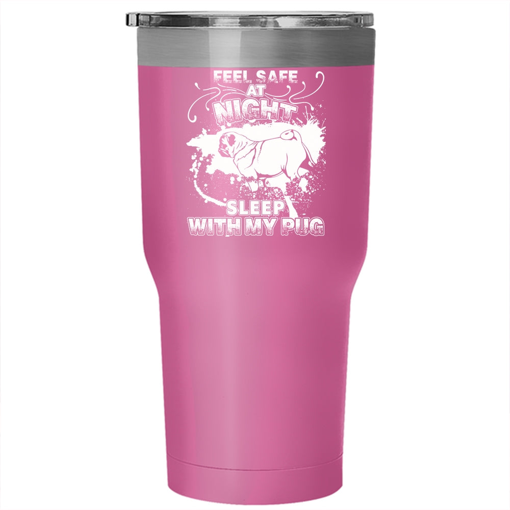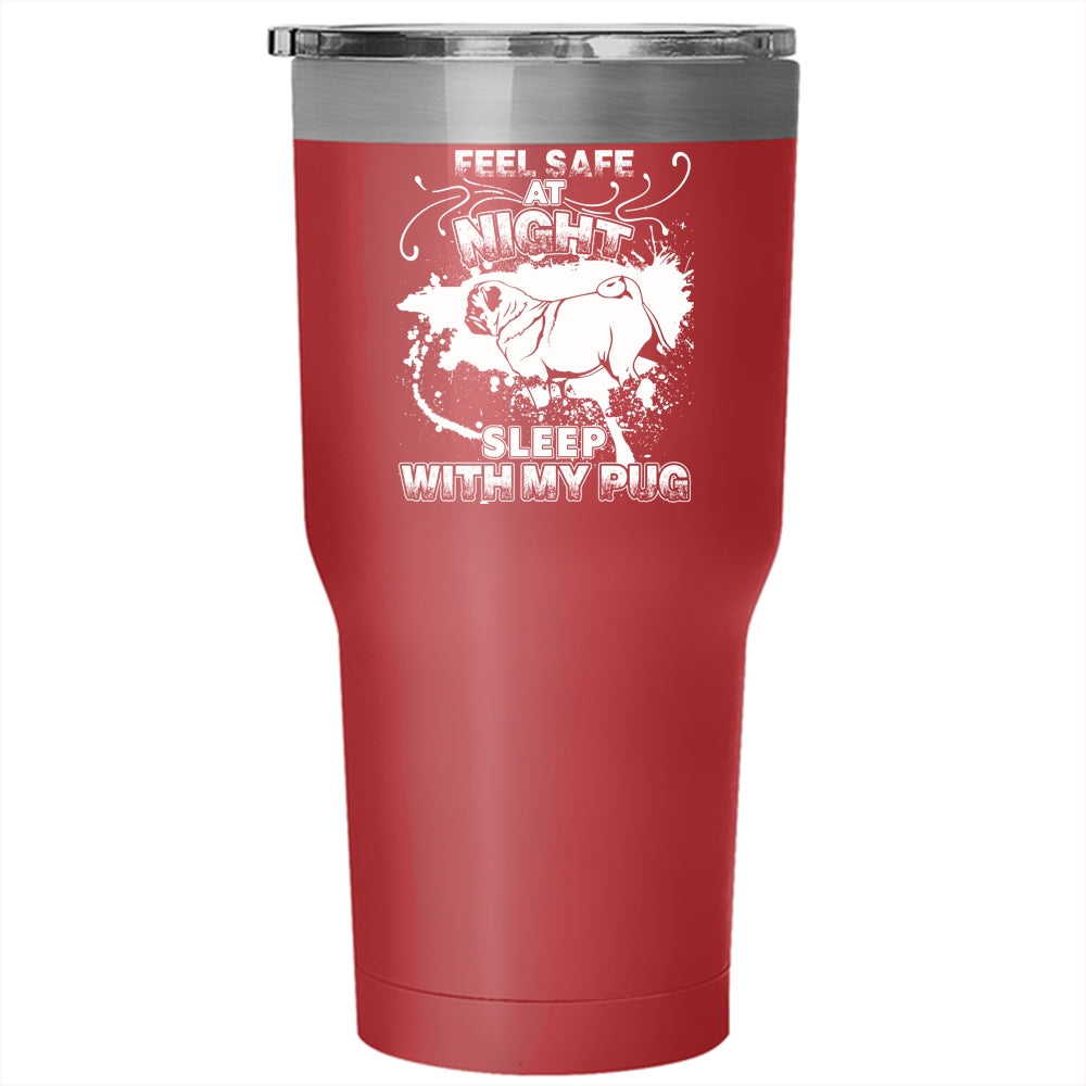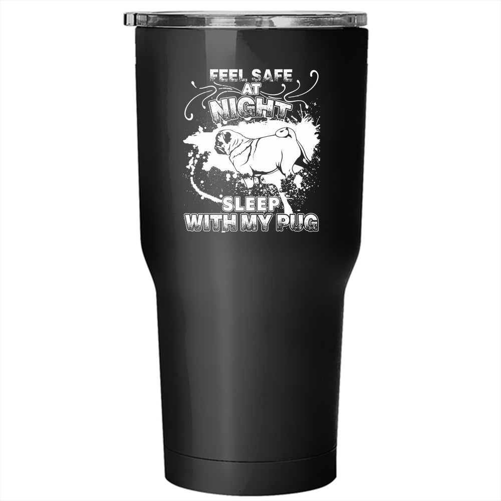 Feel Safe At Night Sleep With My Pug Tumbler 30 oz Stainless Steel, Cool Pug Travel Mug