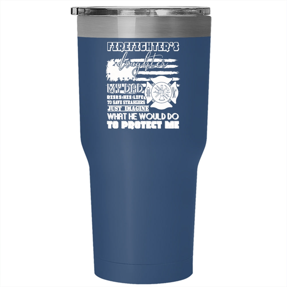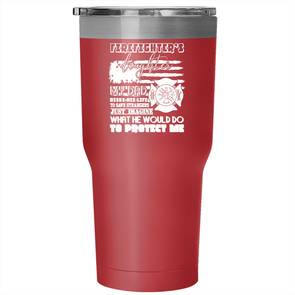 Firefighter's Daughter Tumbler 30 oz Stainless Steel, My Dad Protect Me Travel Mug