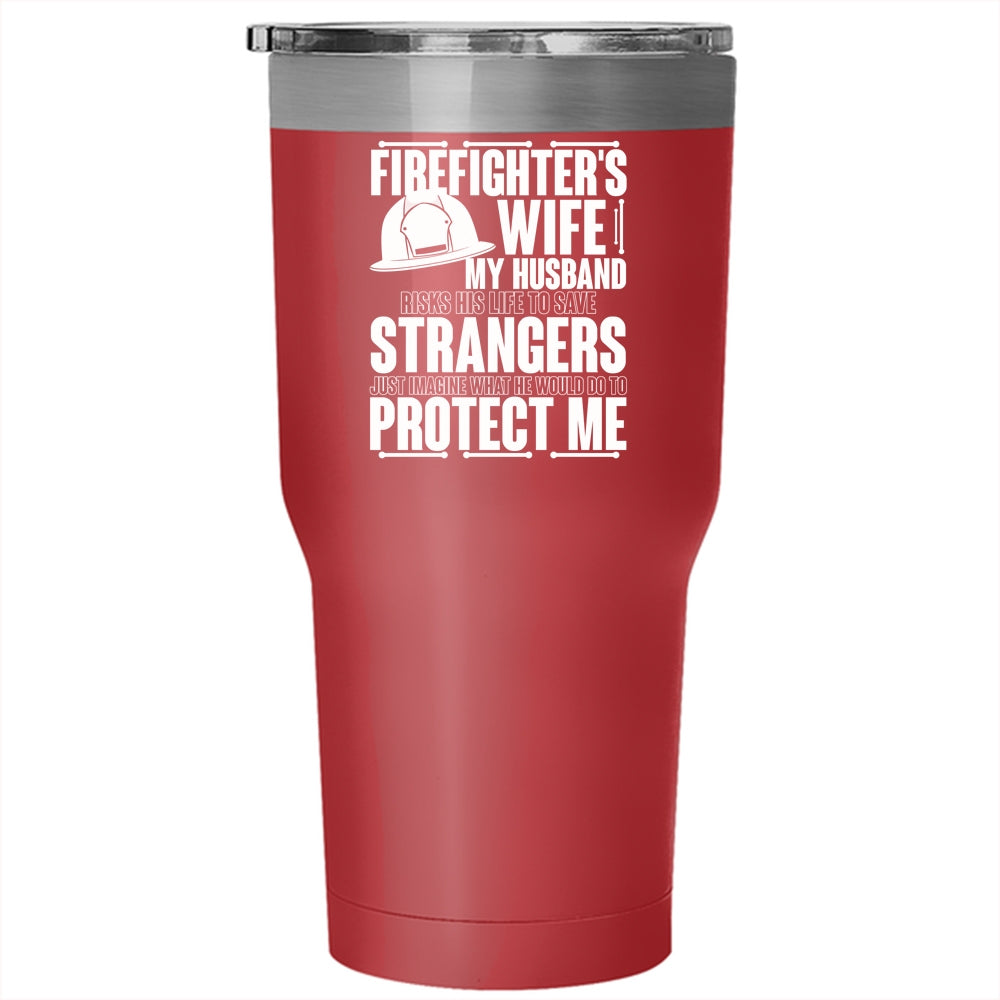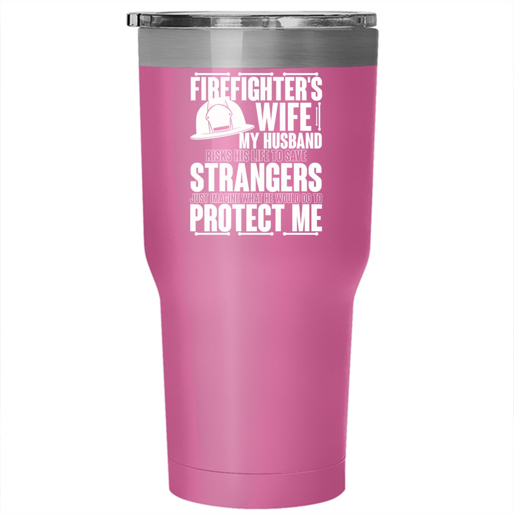 Firefighter's Wife Tumbler 30 oz Stainless Steel, My Husband Would Do To Protect Me Travel Mug