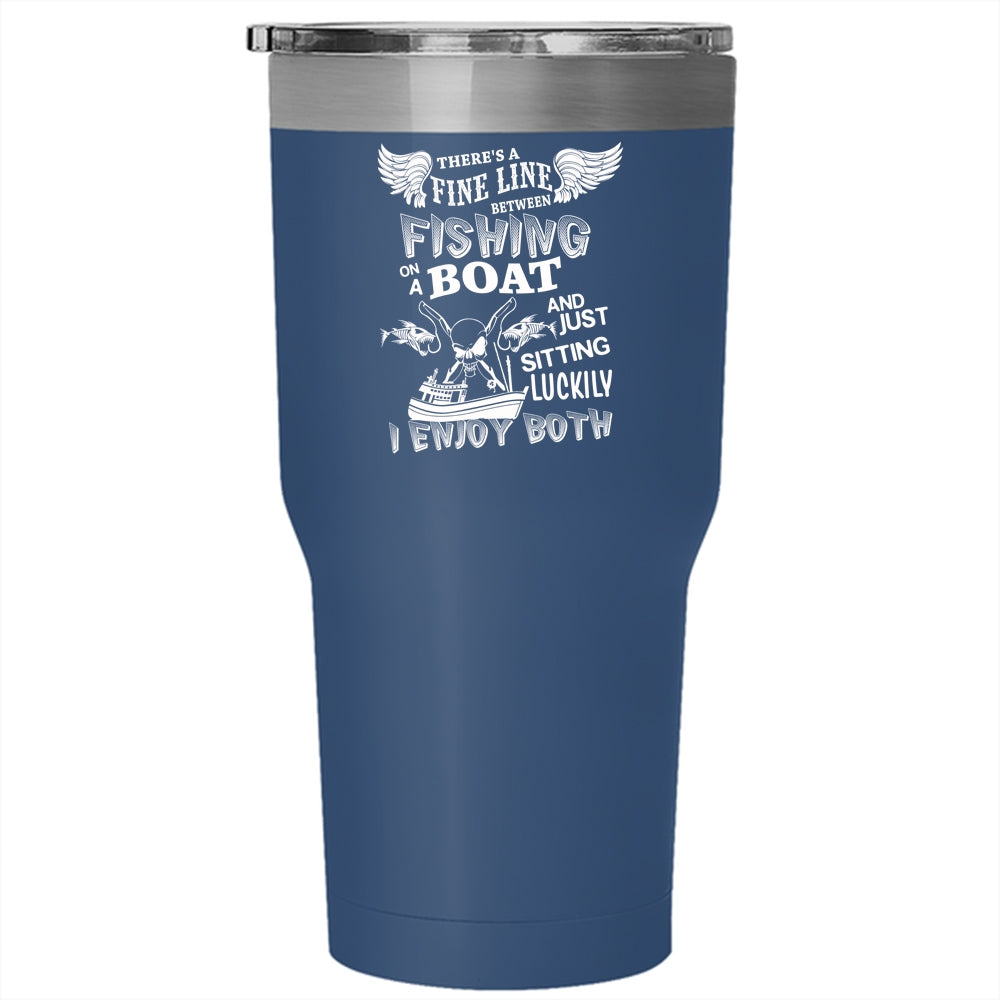 Fishing On A Boat Tumbler 30 oz Stainless Steel, Just Sitting Luckily Travel Mug