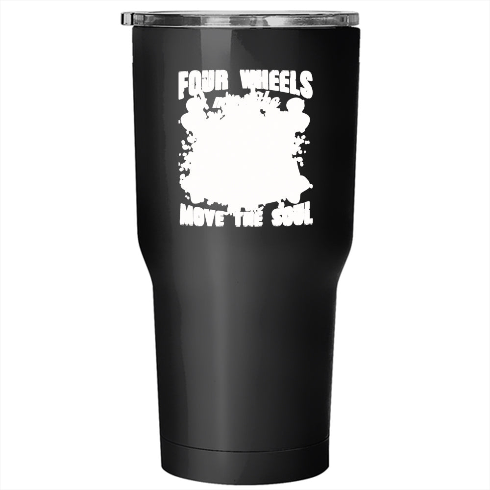 Four Wheels Move The Body Tumbler 30 oz Stainless Steel, Two Wheels Move The Soul Travel Mug