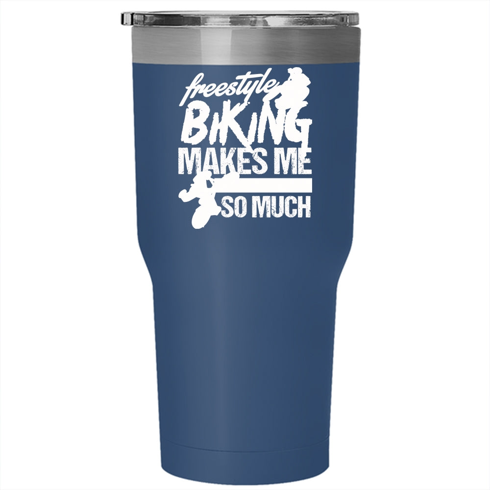 Freestyle Biking Makes Me Happy Tumbler 30 oz Stainless Steel, Awesome Biking Travel Mug