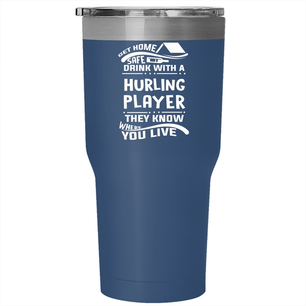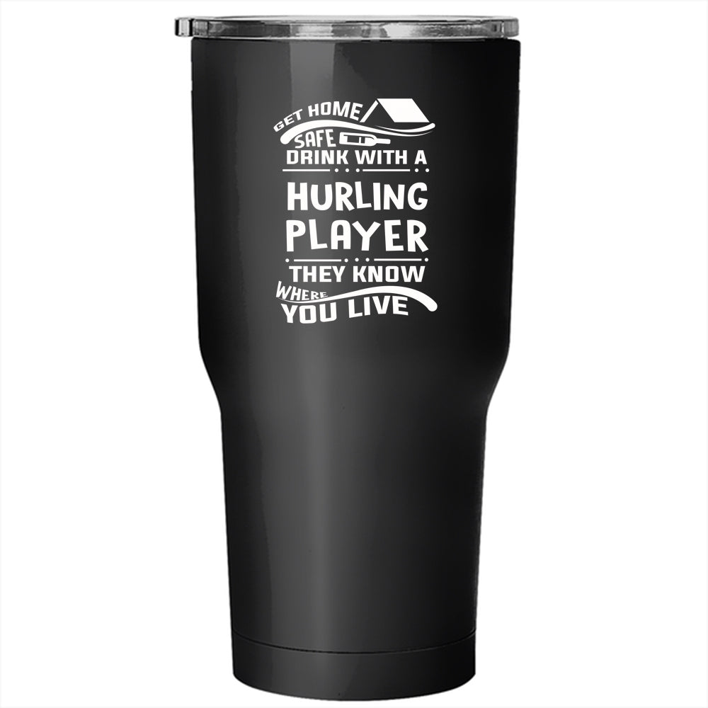 Get Home Safe Drink With A Hurling Player Tumbler 30 oz Stainless Steel, Funny Drinking Travel Mug