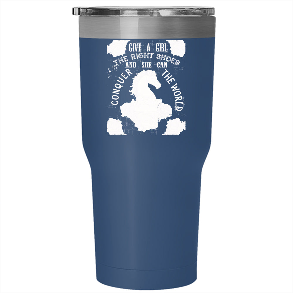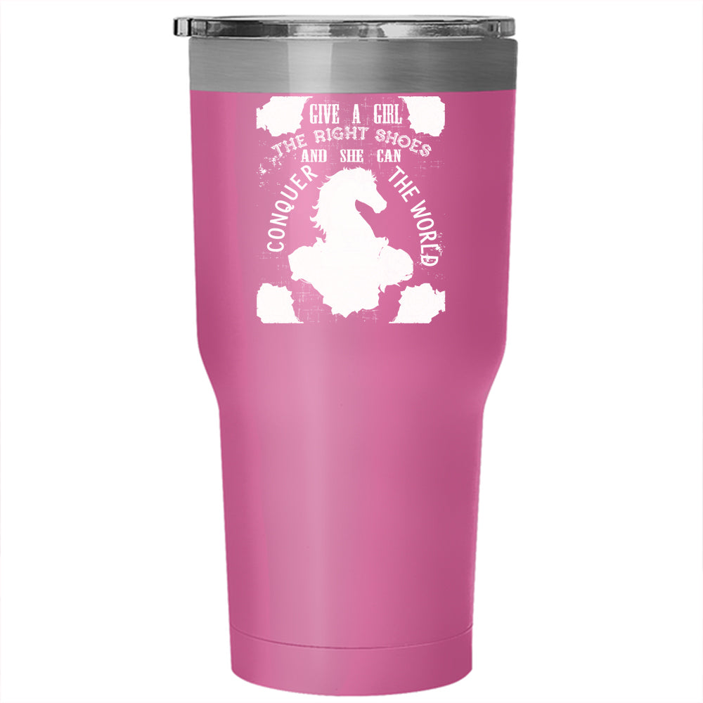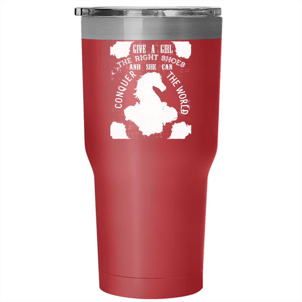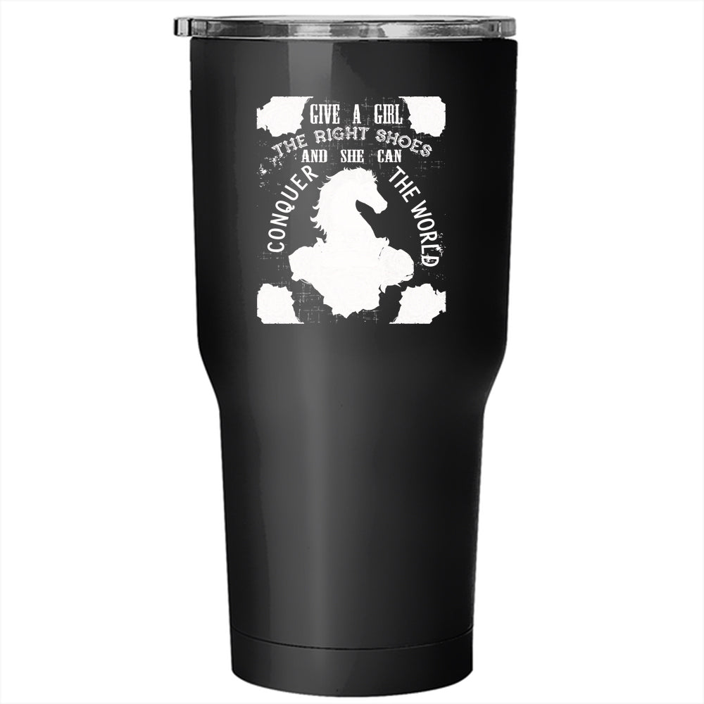 Give A Girl The Right Shoes Tumbler 30 oz Stainless Steel, She Can Conquer The World Travel Mug