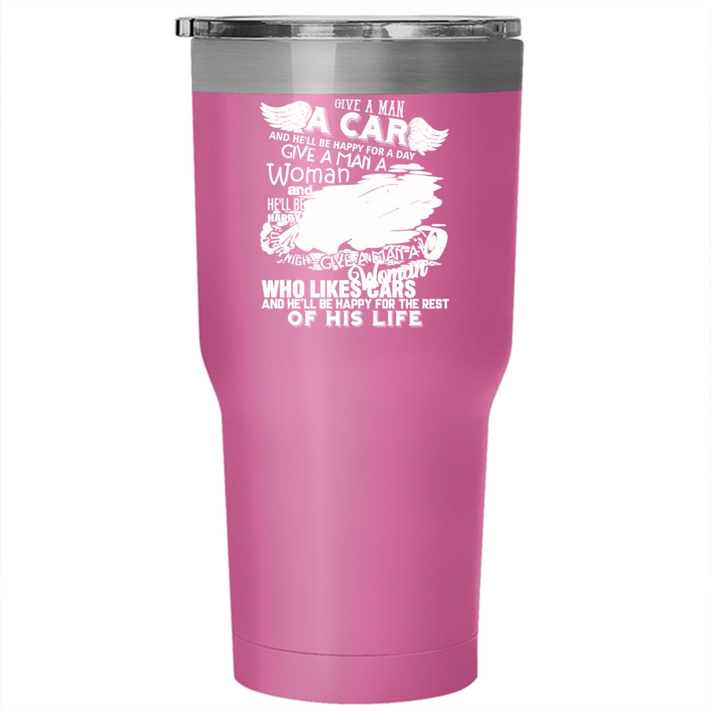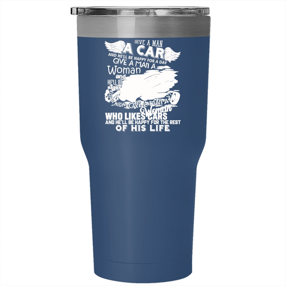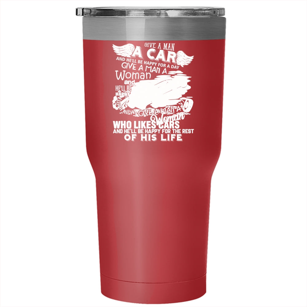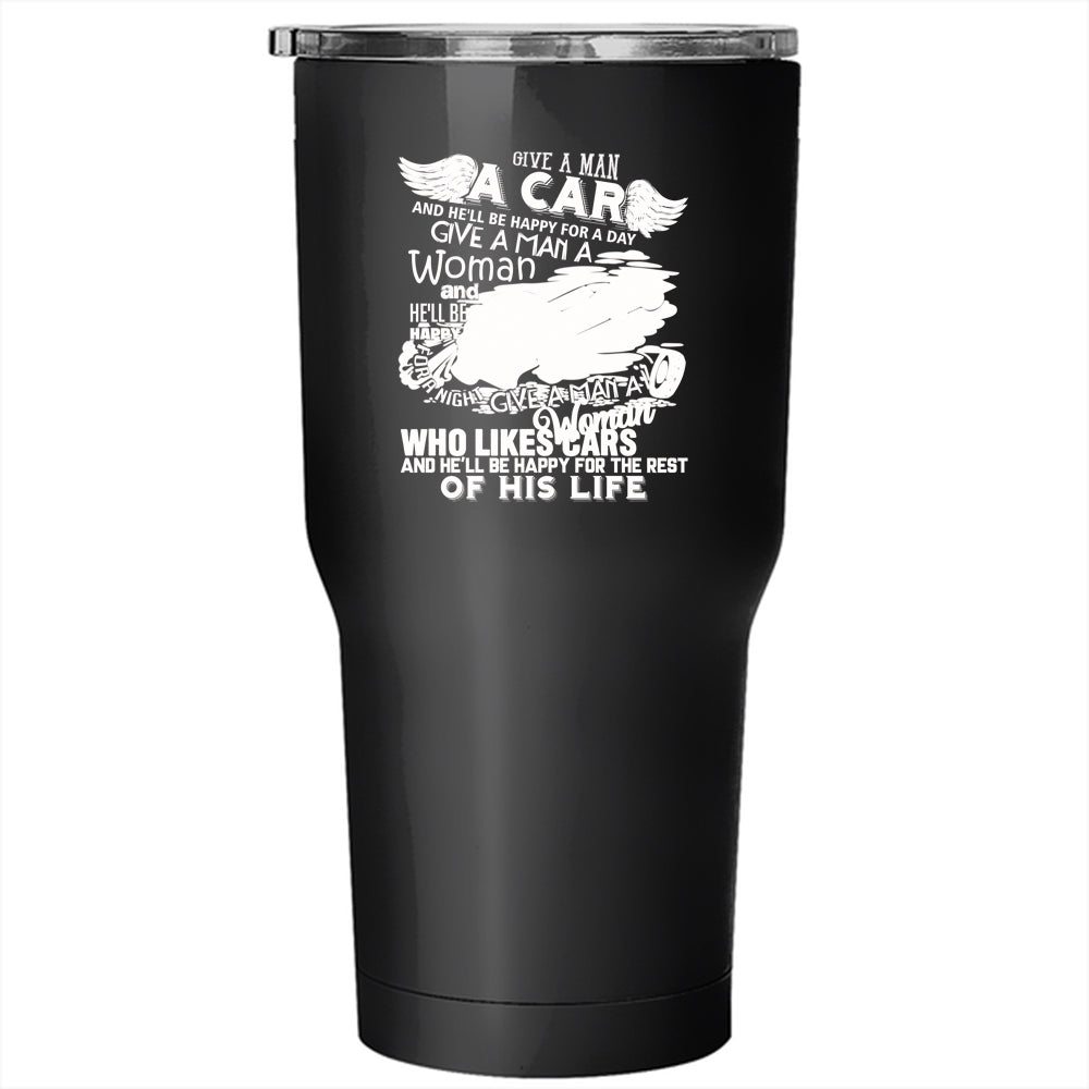 Give A Man A Car Tumbler 30 oz Stainless Steel, He'll Be Happy For A Day Travel Mug