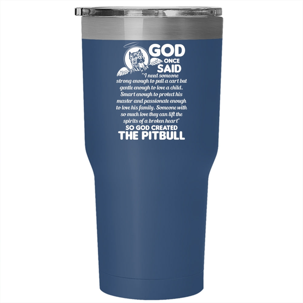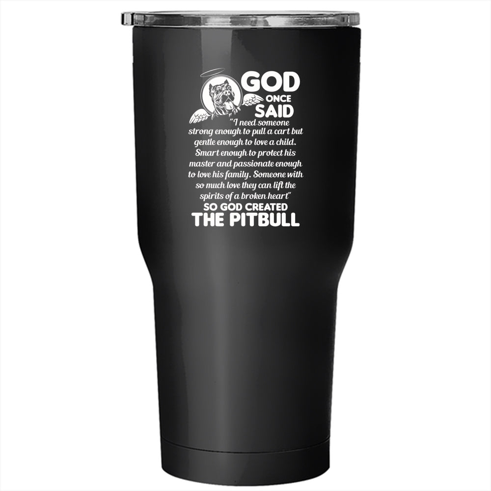 God Created The Pitbull Tumbler 30 oz Stainless Steel, Funny Gift For Pitbull Owner Travel Mug