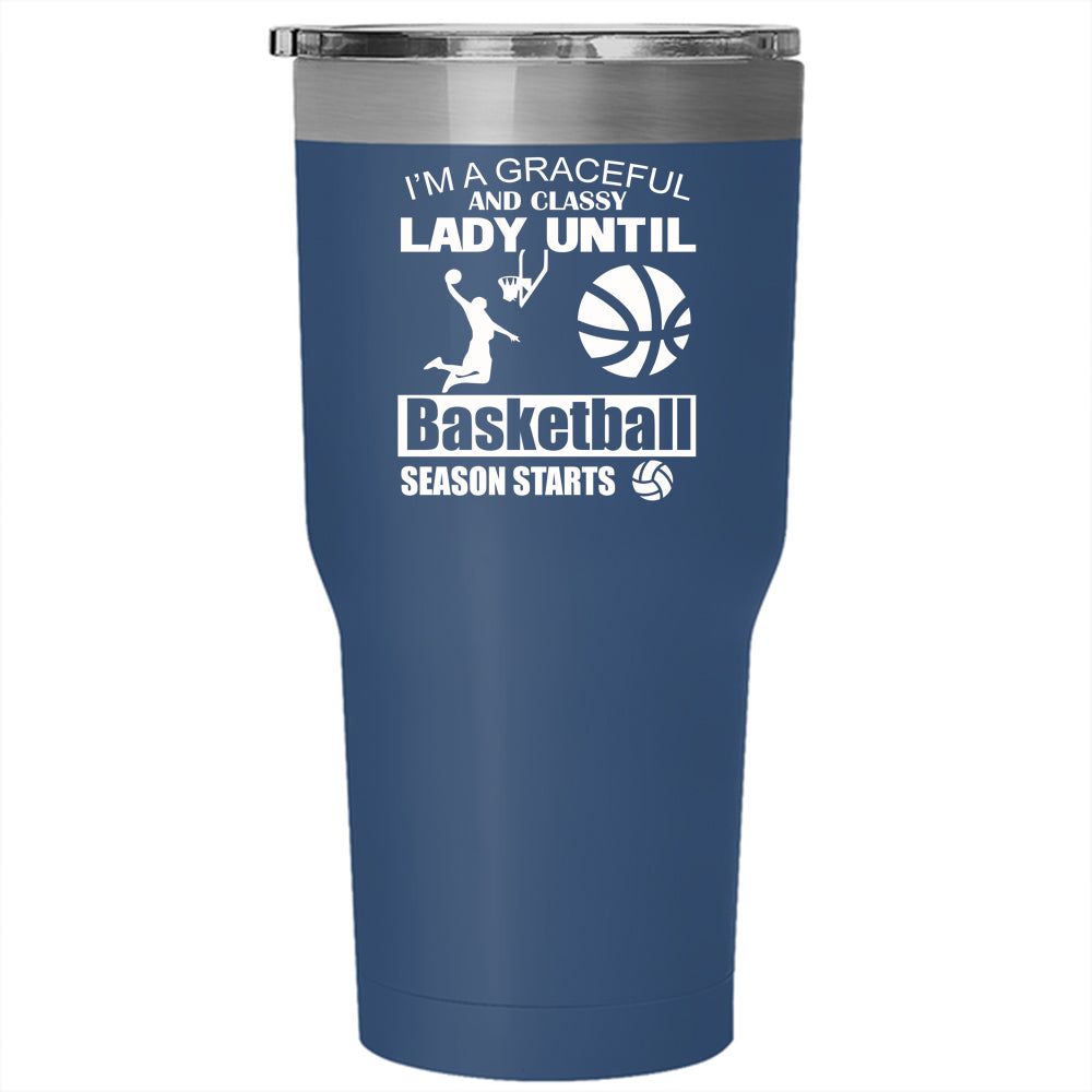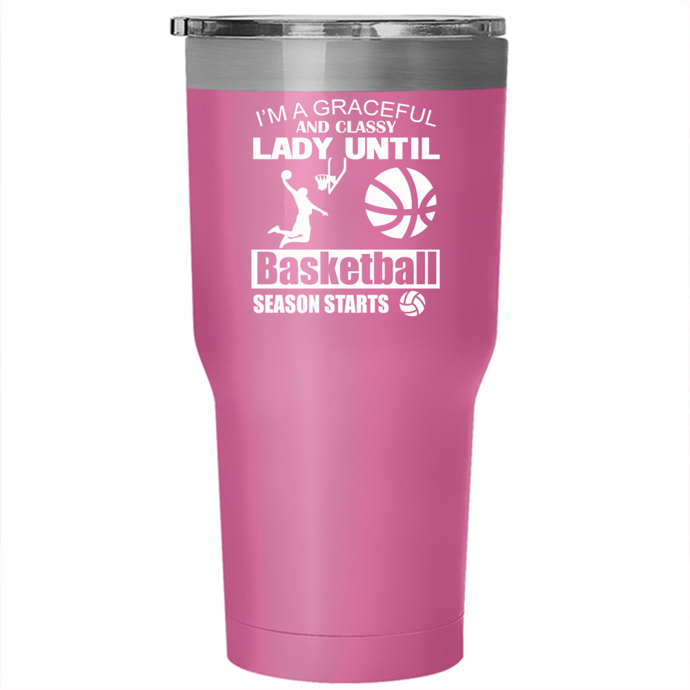 Gracefull And Classy Lady Tumbler 30 oz Stainless Steel, Basketball Season Starts Travel Mug