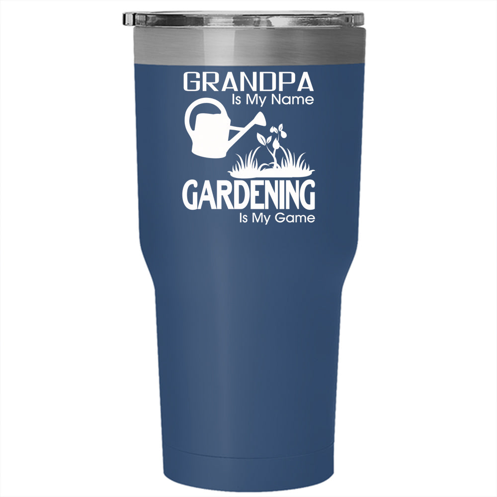 Grandpa Is My Name Tumbler 30 oz Stainless Steel, Gardening Is My Game Travel Mug