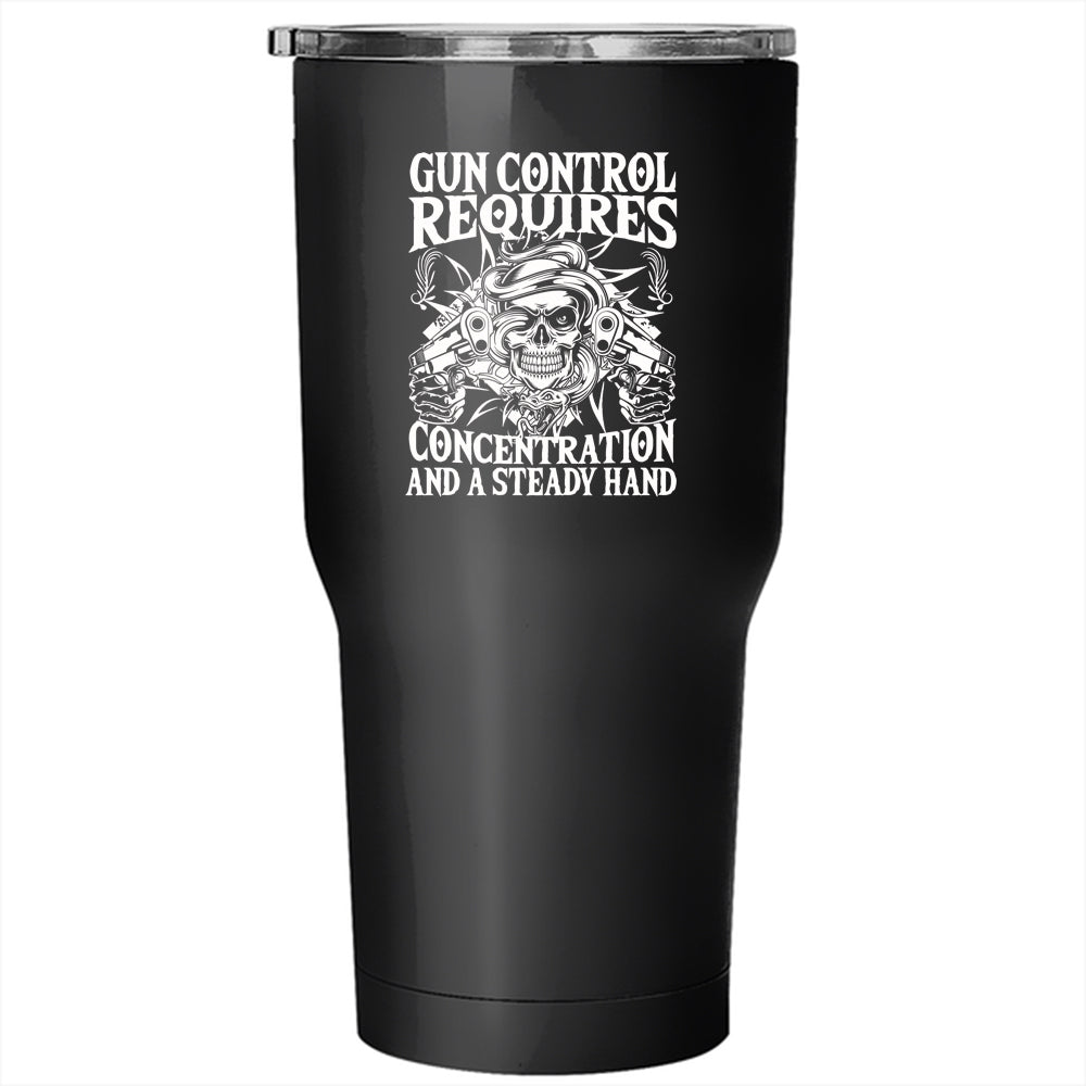 Gun Control Requires Concentration Tumbler 30 oz Stainless Steel, Steady Hand Travel Mug