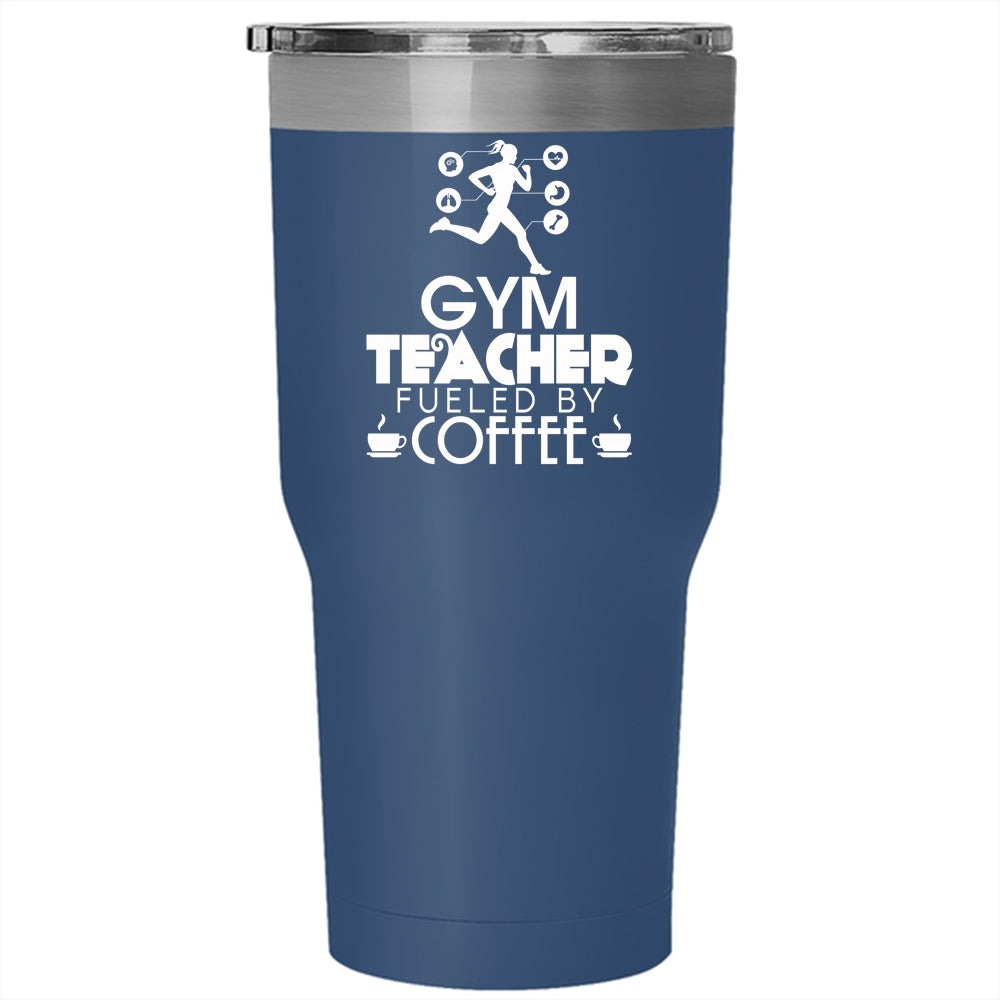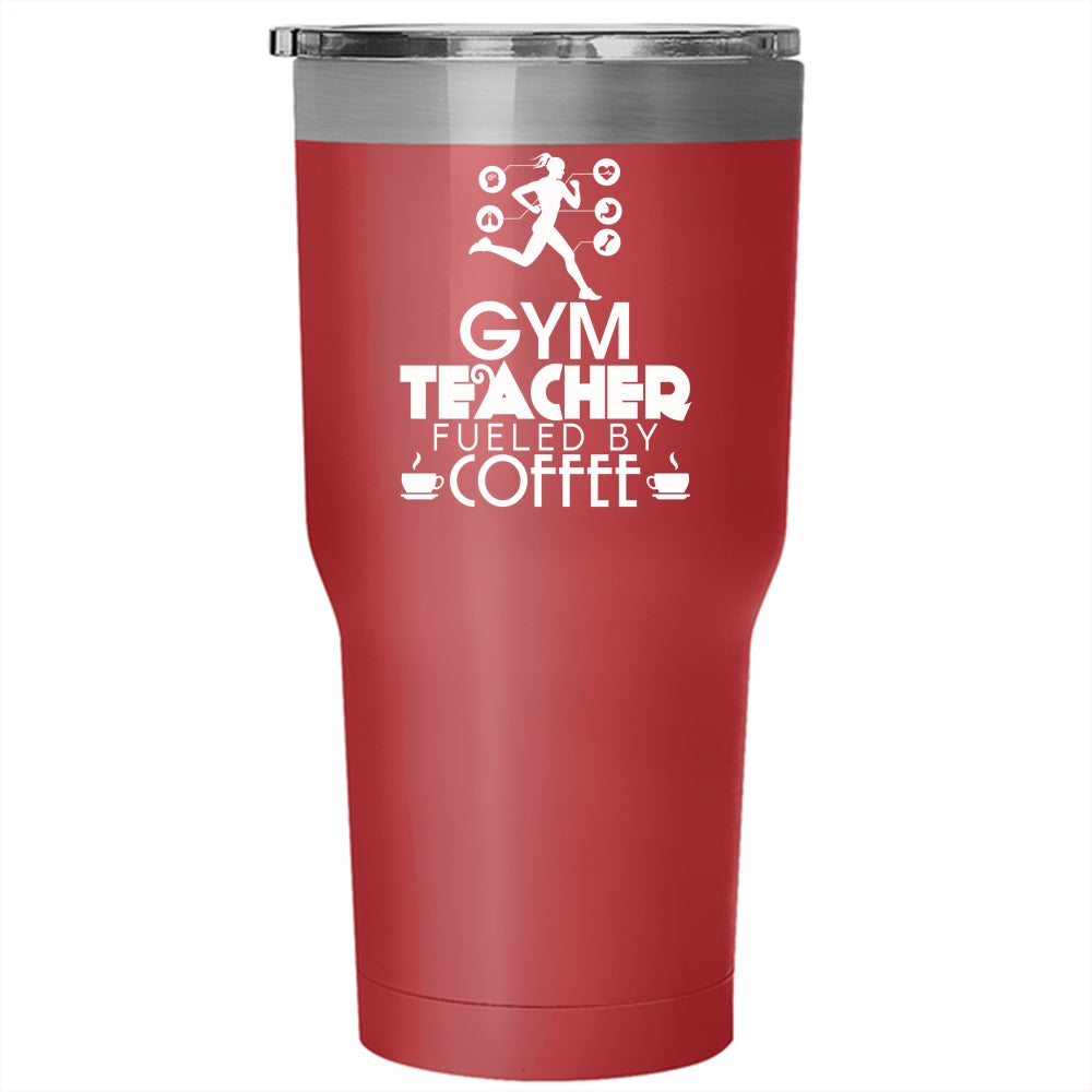Gym Teacher Fueled By Coffee Tumbler 30 oz Stainless Steel, Cute Gym Teacher Travel Mug