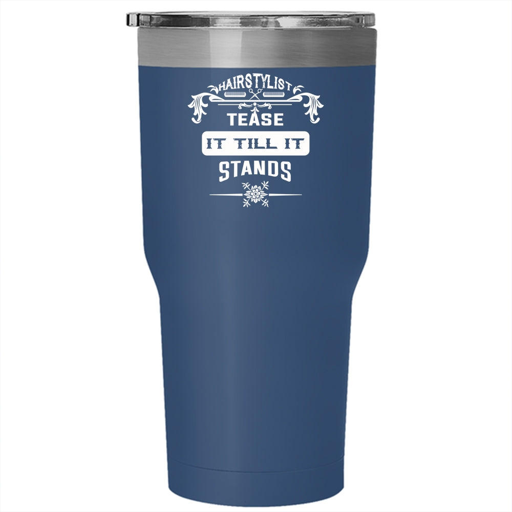 Hairstylist Tease It Till It Stands Tumbler 30 oz Stainless Steel, Cool Hairstylist Travel Mug