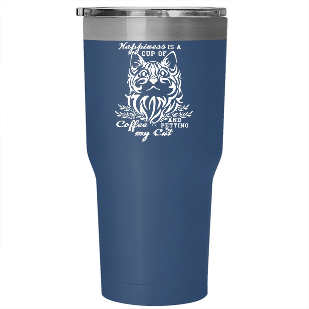 Happiness Is A Cup Of Coffee And Petting Tumbler 30 oz Stainless Steel, My Cat Travel Mug