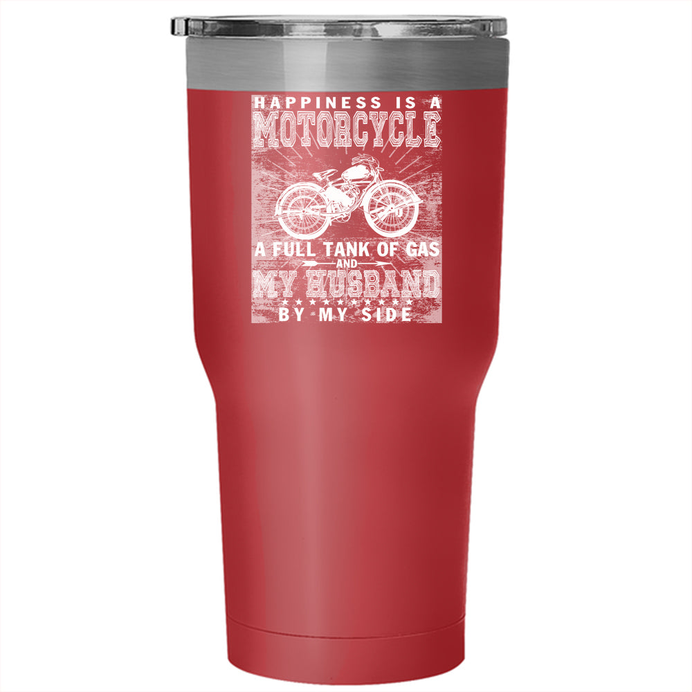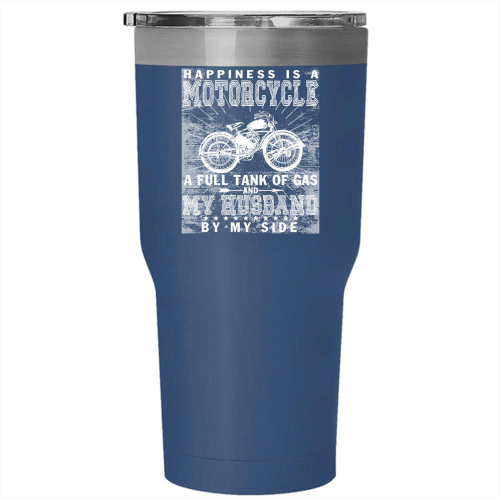 Happiness Is A Motorcycle Tumbler 30 oz Stainless Steel, My Husband By My Side Travel Mug