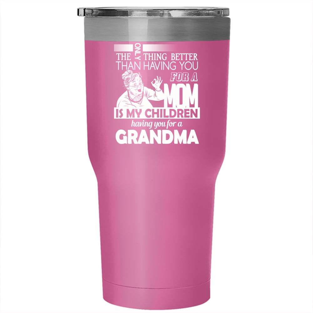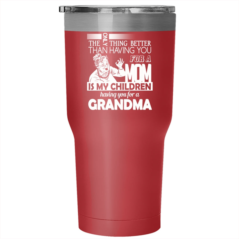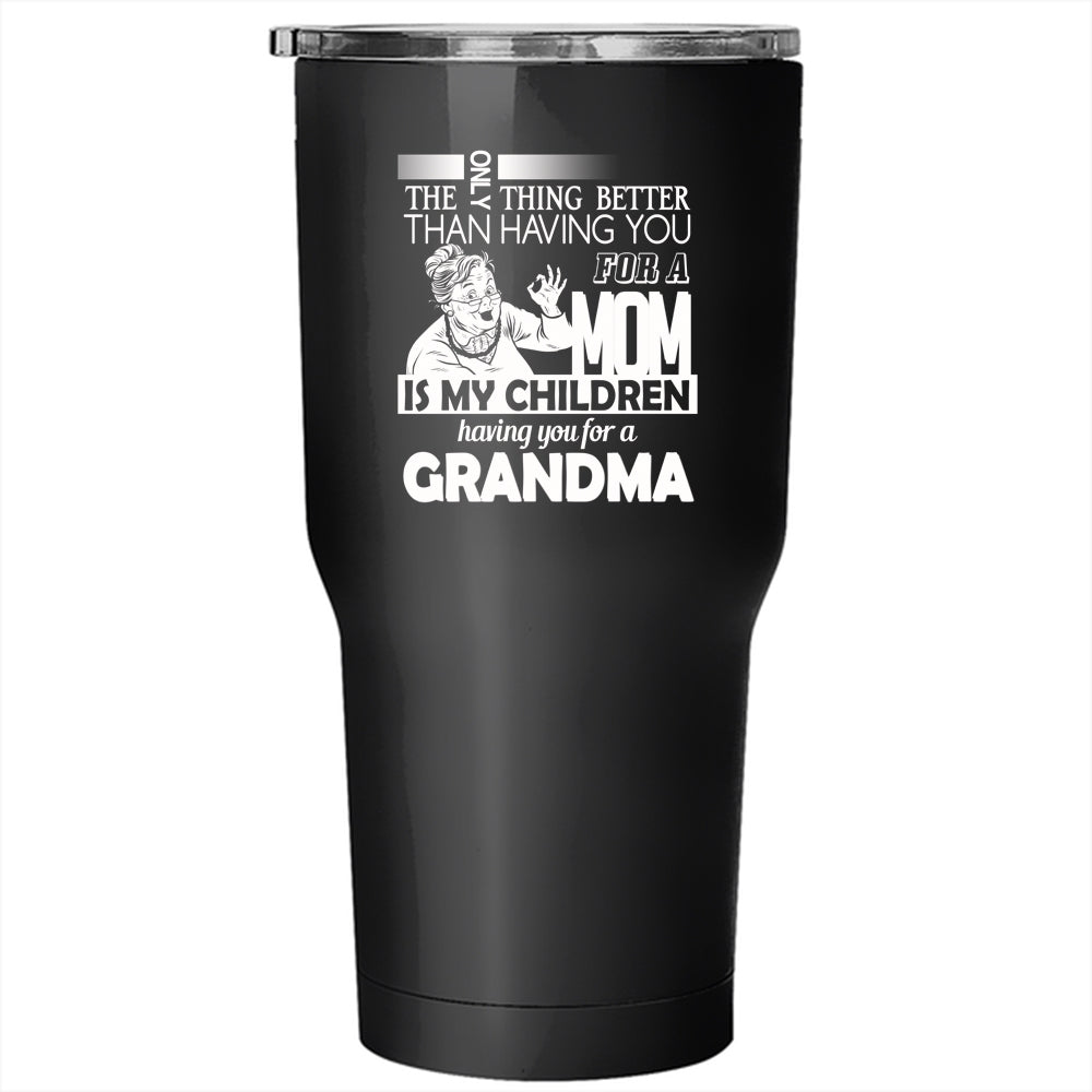 Having You For A Mom Is My Children Tumbler 30 oz Stainless Steel, Cute Grandma Travel Mug