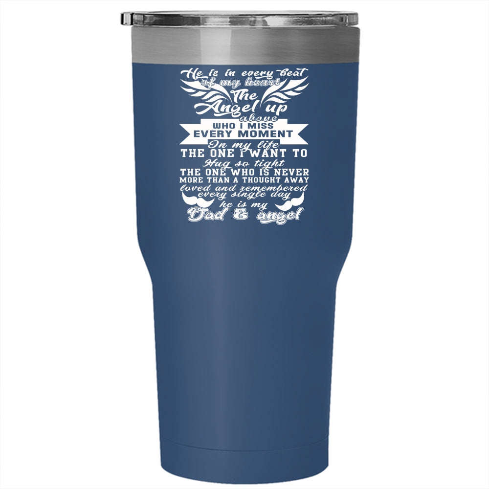He Is In Every Beat Of My Heart Tumbler 30 oz Stainless Steel, He Is My Dad And Angel Travel Mug