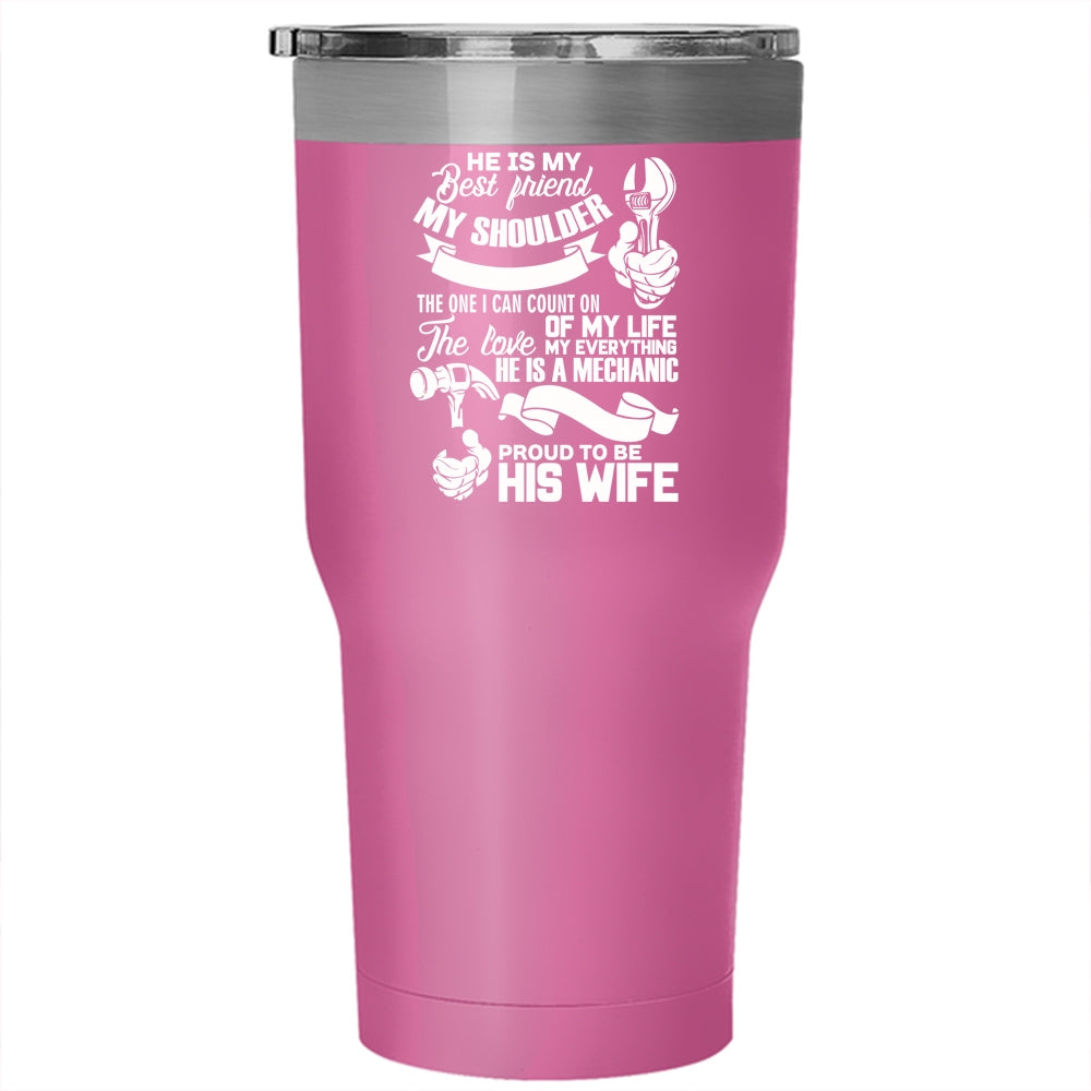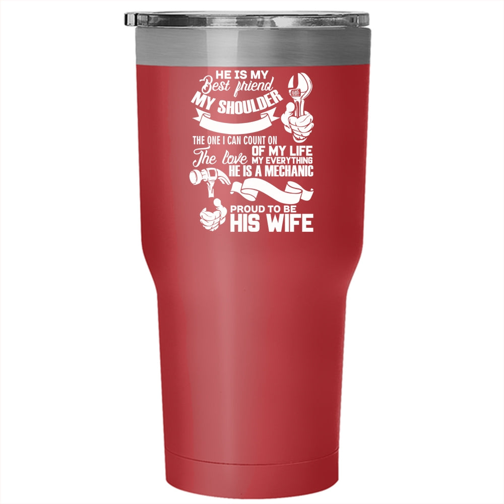 He Is My Best Friend Tumbler 30 oz Stainless Steel, I Am Proud To Be His Wife Travel Mug
