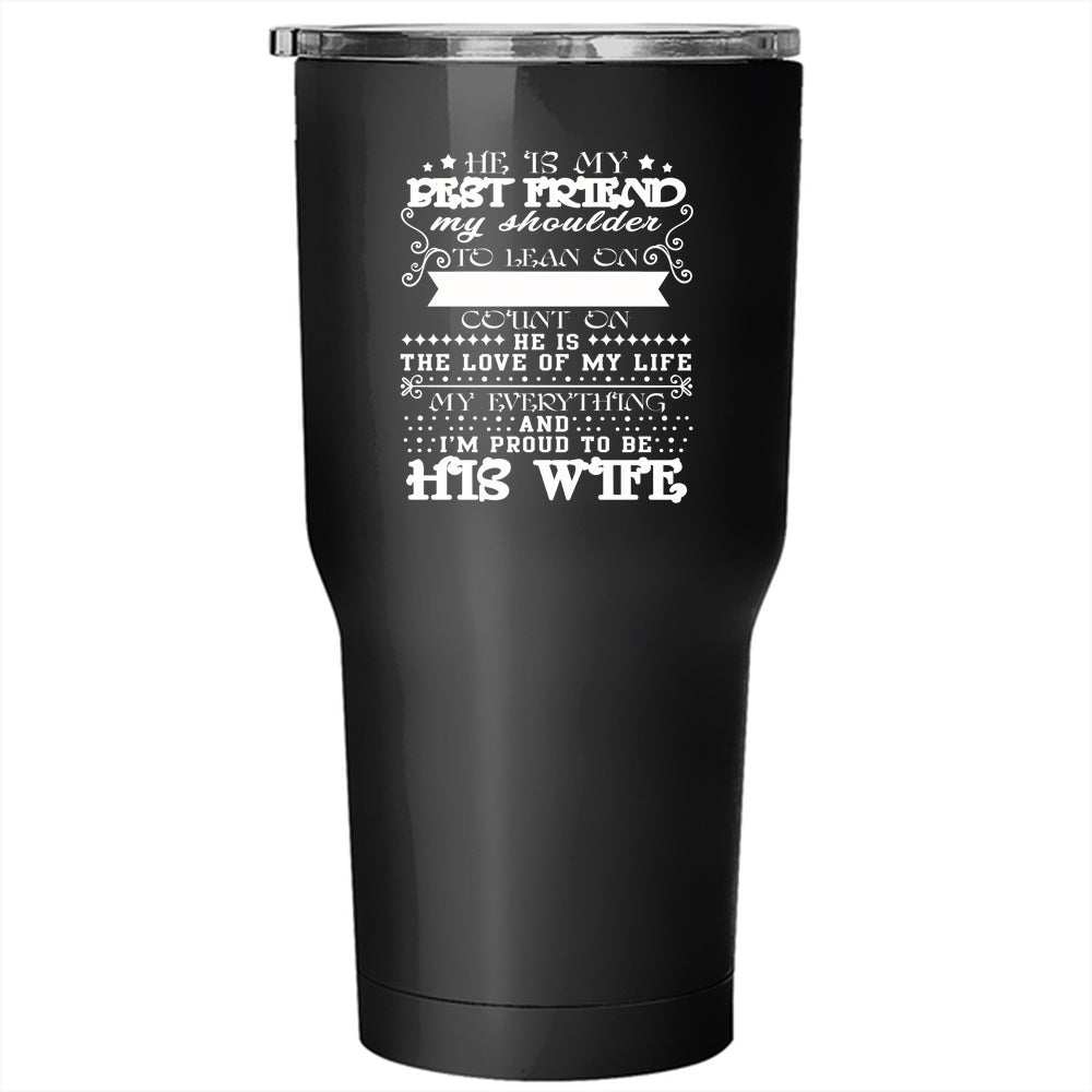 He Is My Best Friend Tumbler 30 oz Stainless Steel, I'm Proud To Be His Wife Travel Mug