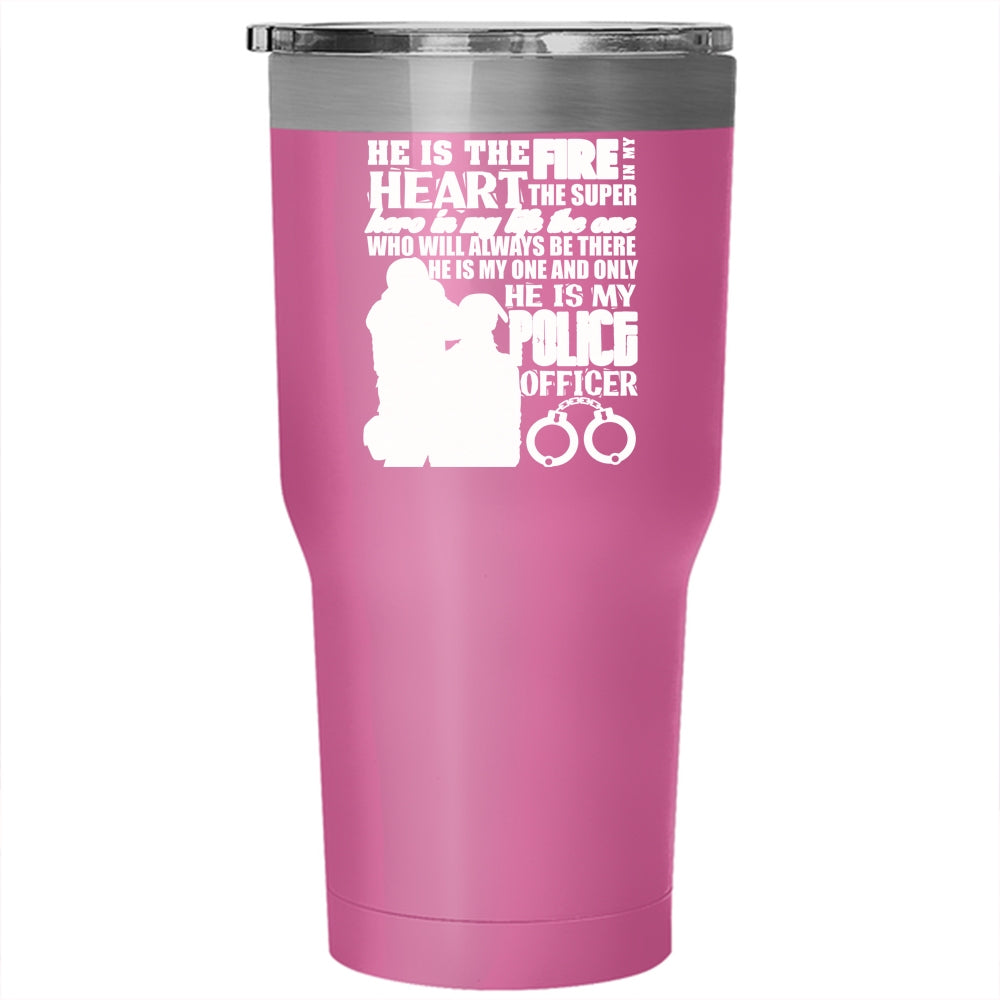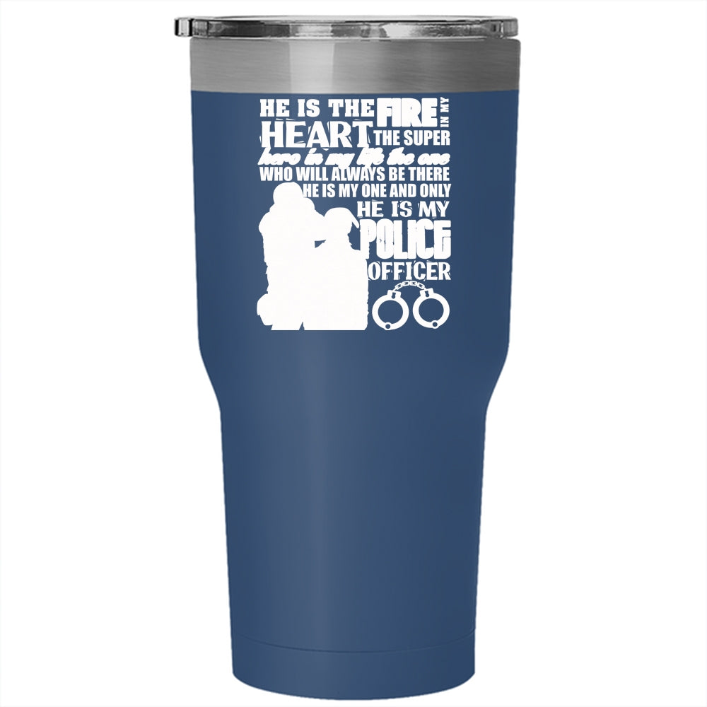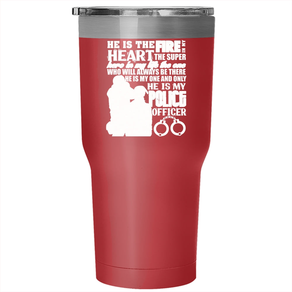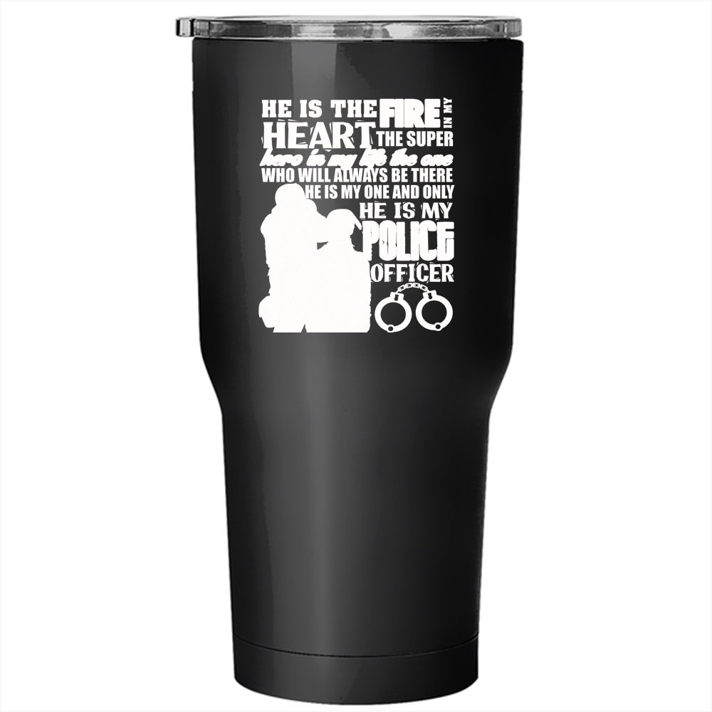 He Is The Fire In My Heart Tumbler 30 oz Stainless Steel, He Is My Police Officer Travel Mug