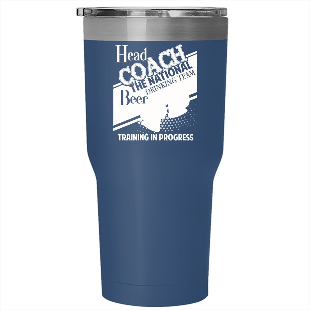 Head Coach The National Tumbler 30 oz Stainless Steel, Beer Drinking Team Training In Progress Travel Mug