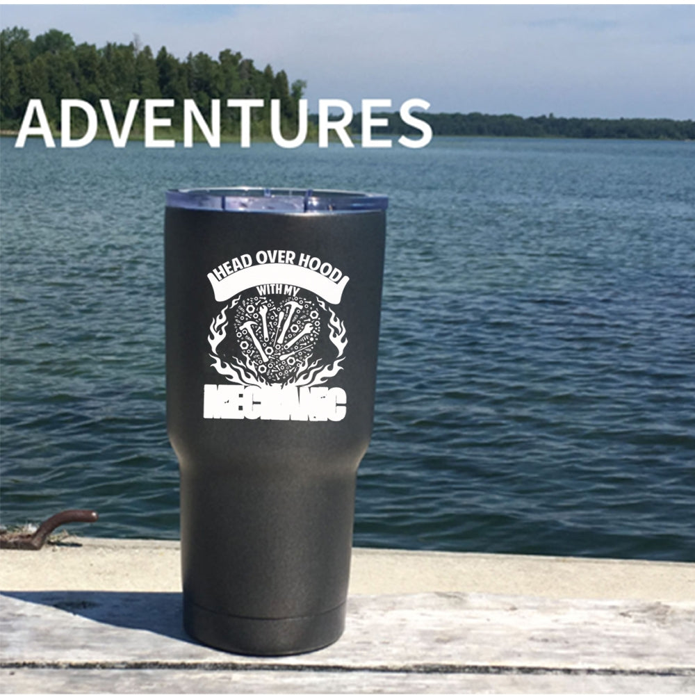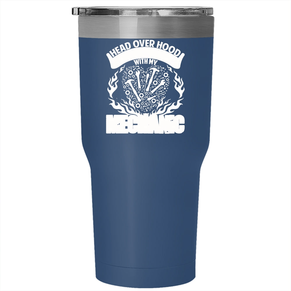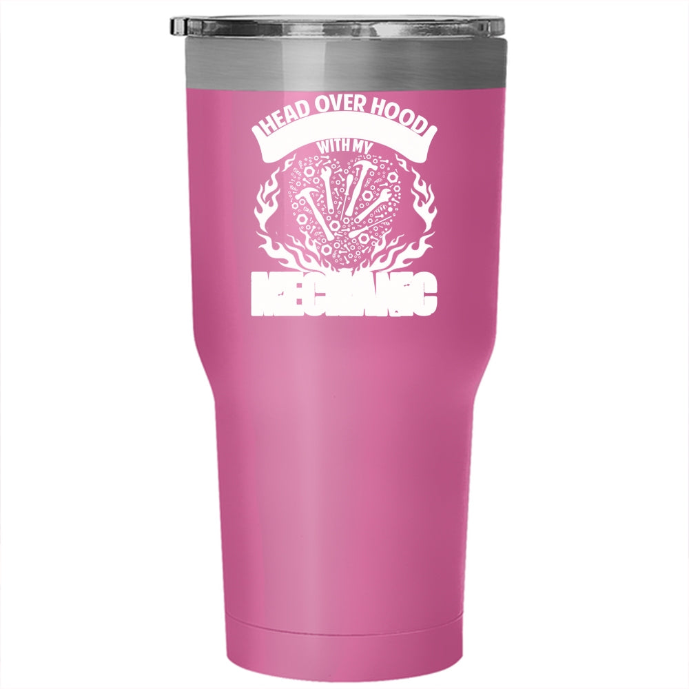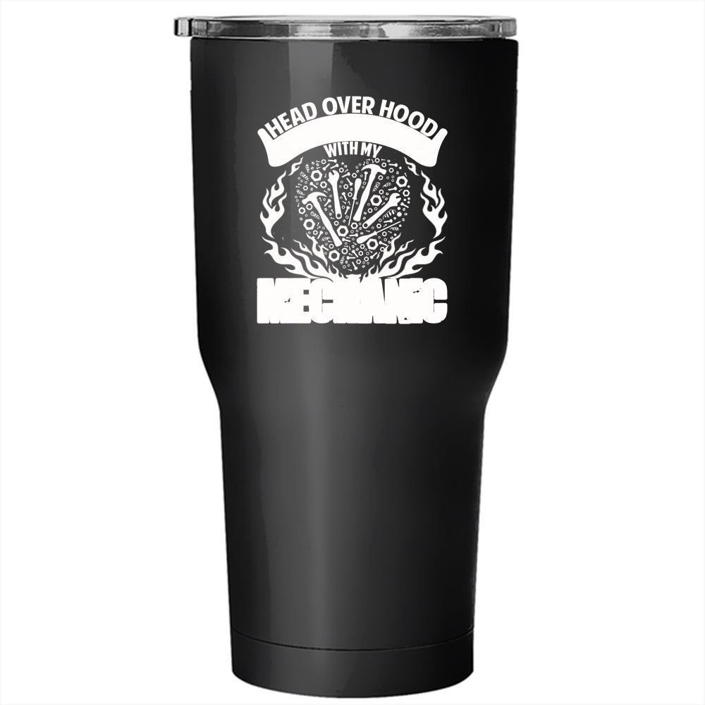 Head Over Hood In Love With My Mechanic Tumbler 30 oz Stainless Steel, Cute Mechanic Travel Mug