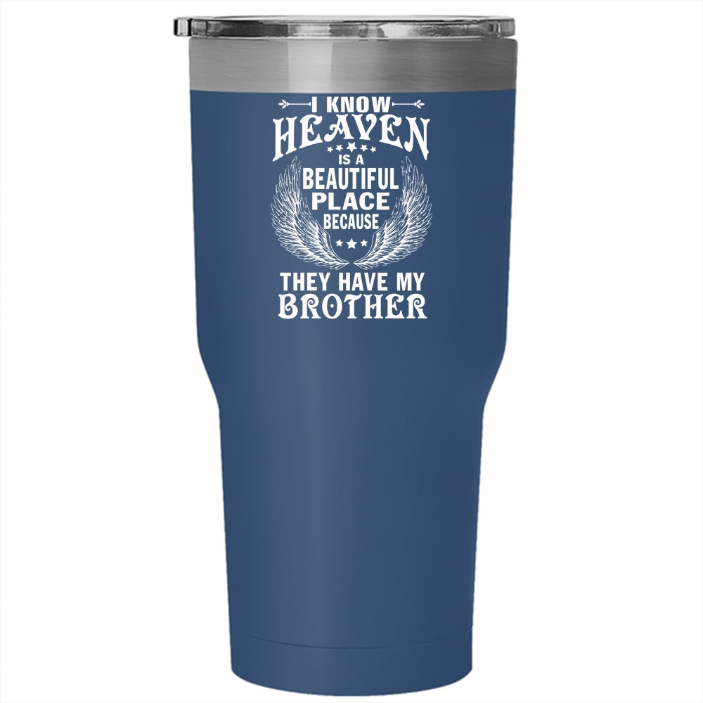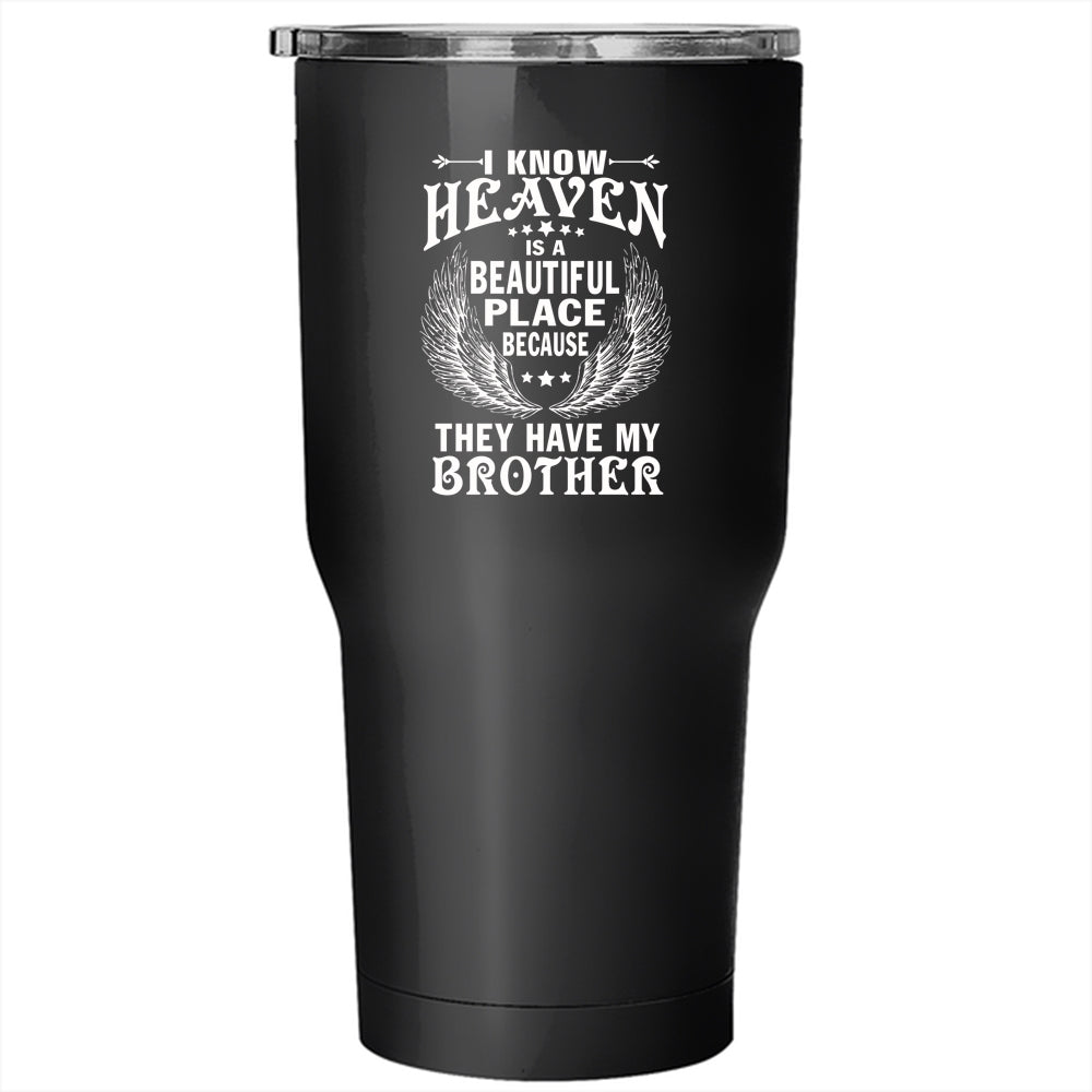 Heaven Is A Beautiful Place Tumbler 30 oz Stainless Steel, They Have My Brother Travel Mug