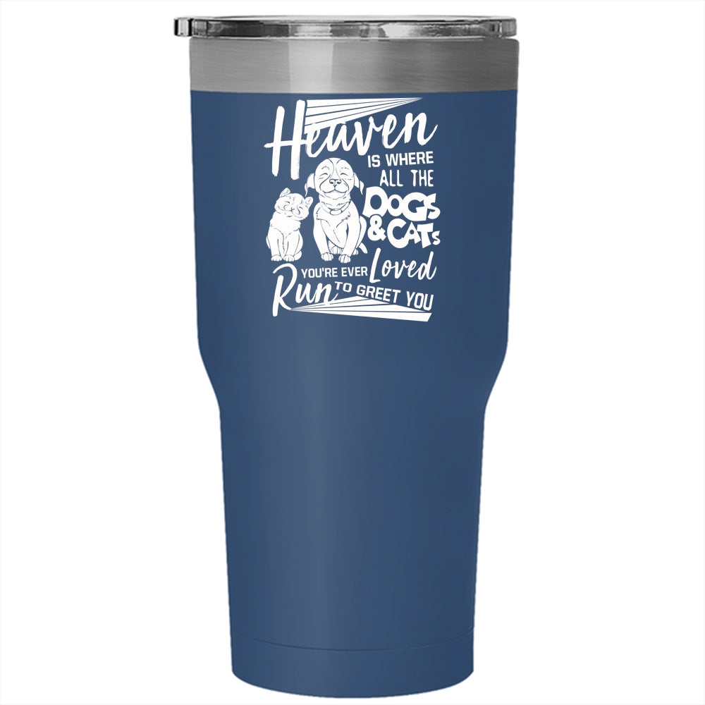Heaven Is Where All The Dogs And Cats Loved Tumbler 30 oz Stainless Steel, Cute Travel Mug