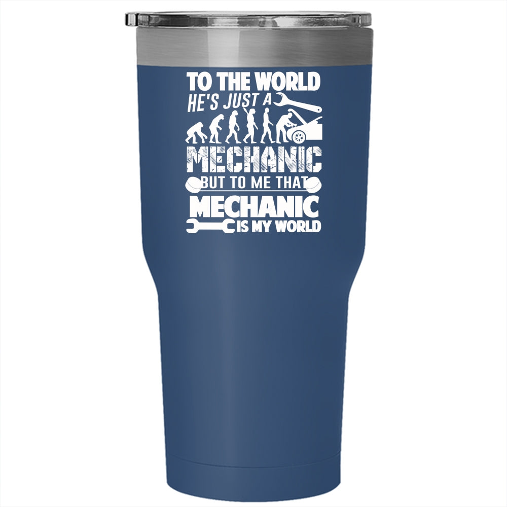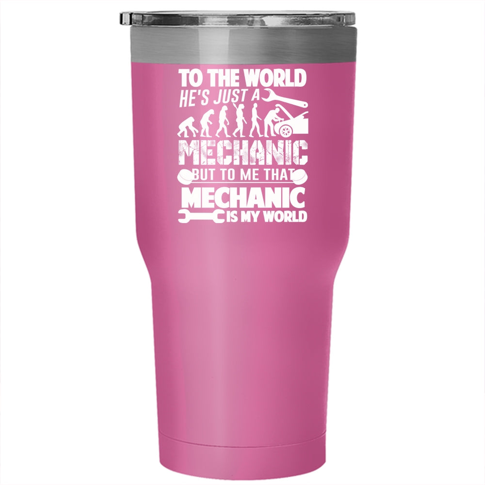 He's Just A Mechanic Tumbler 30 oz Stainless Steel, To Me That Mechanic Is My World Travel Mug