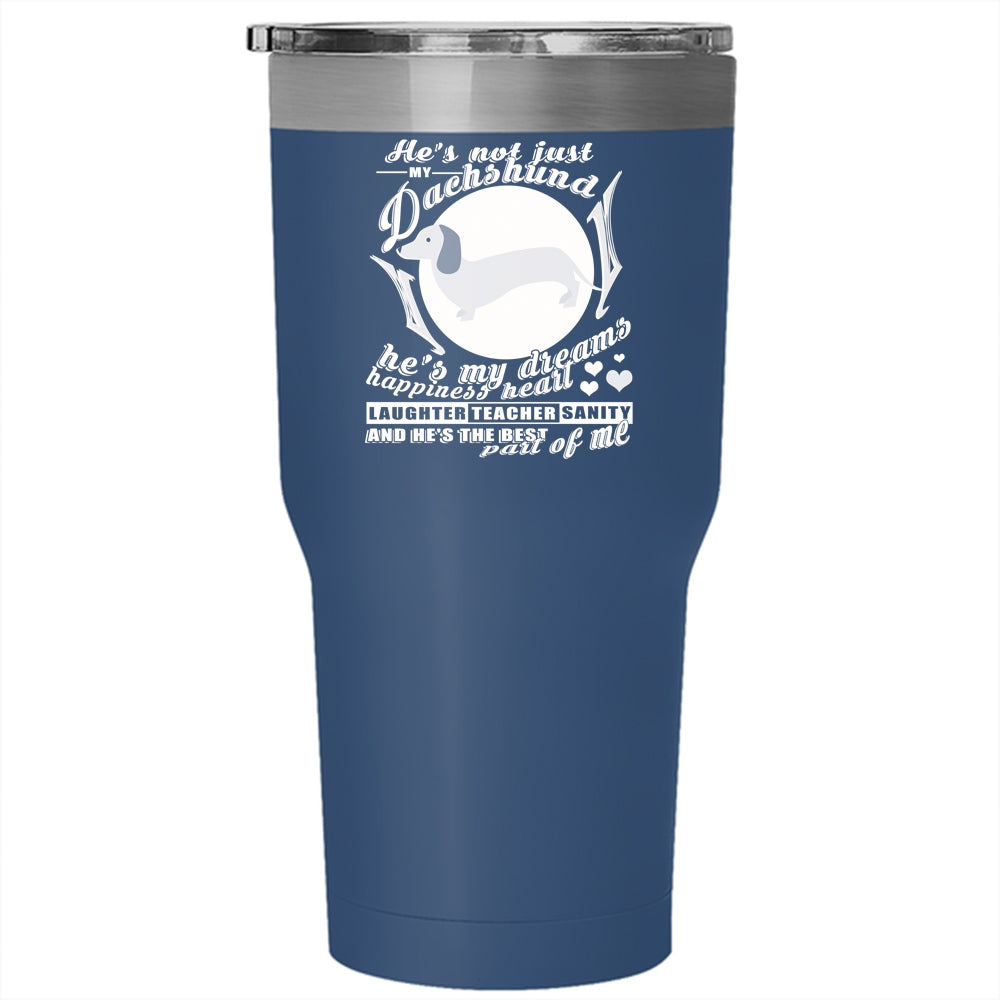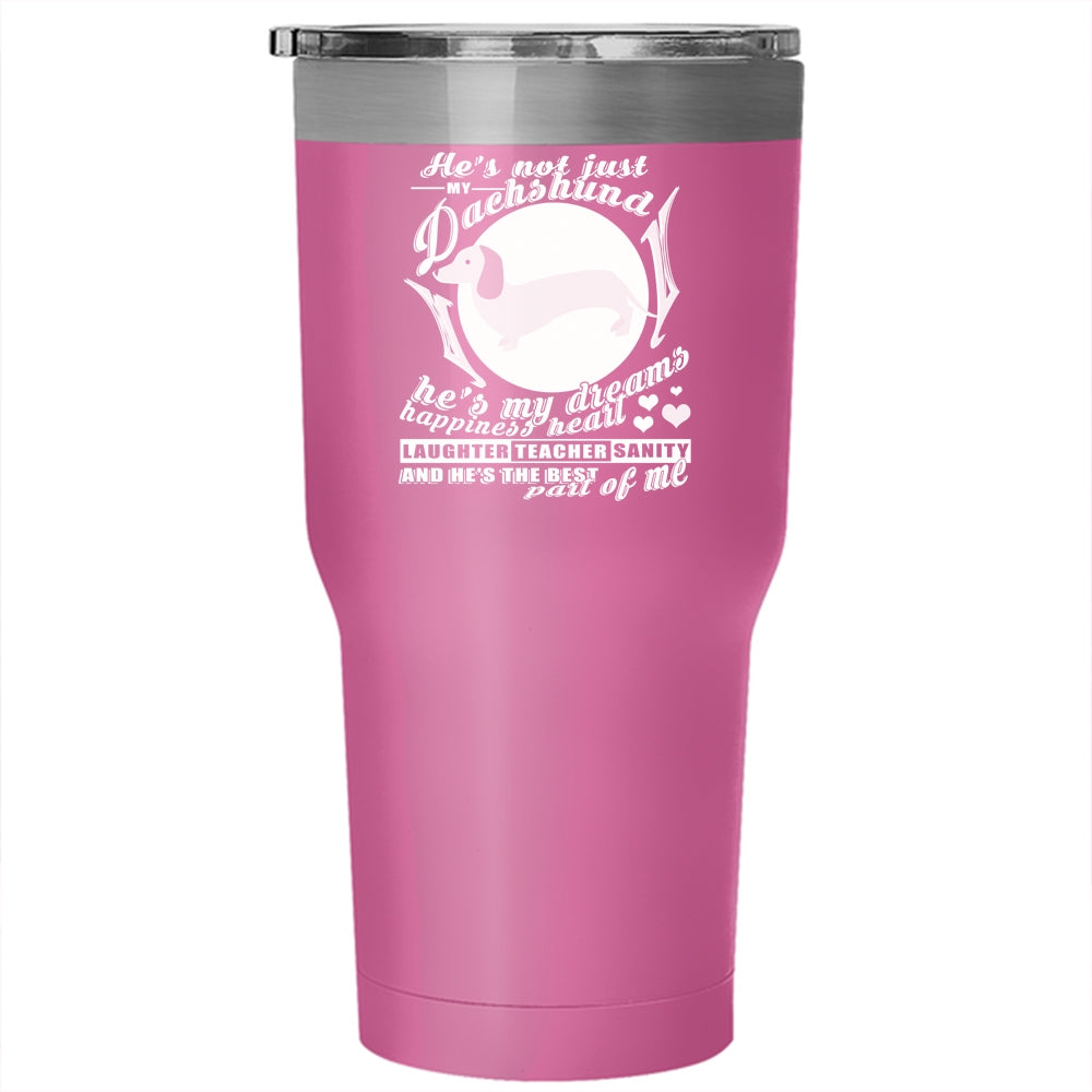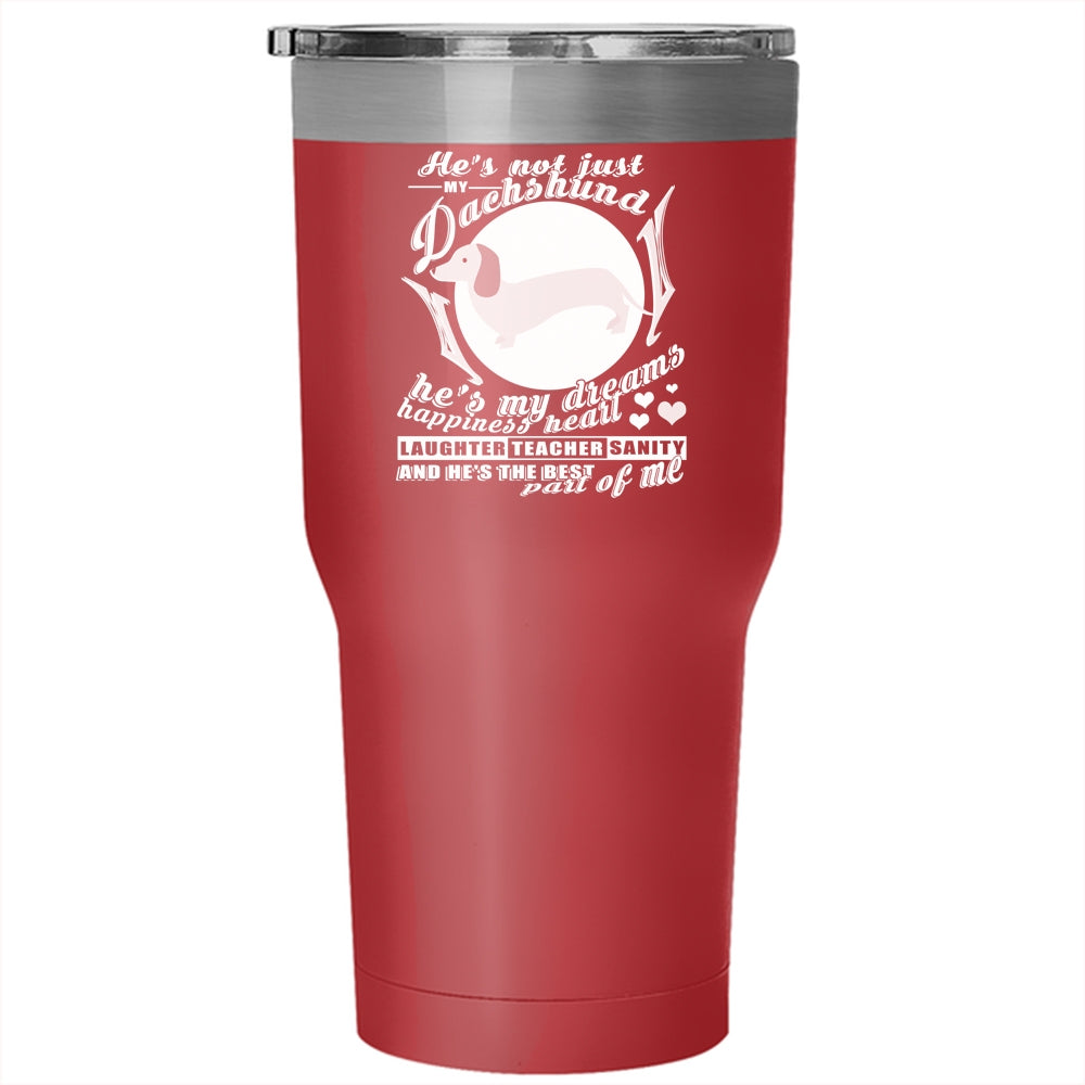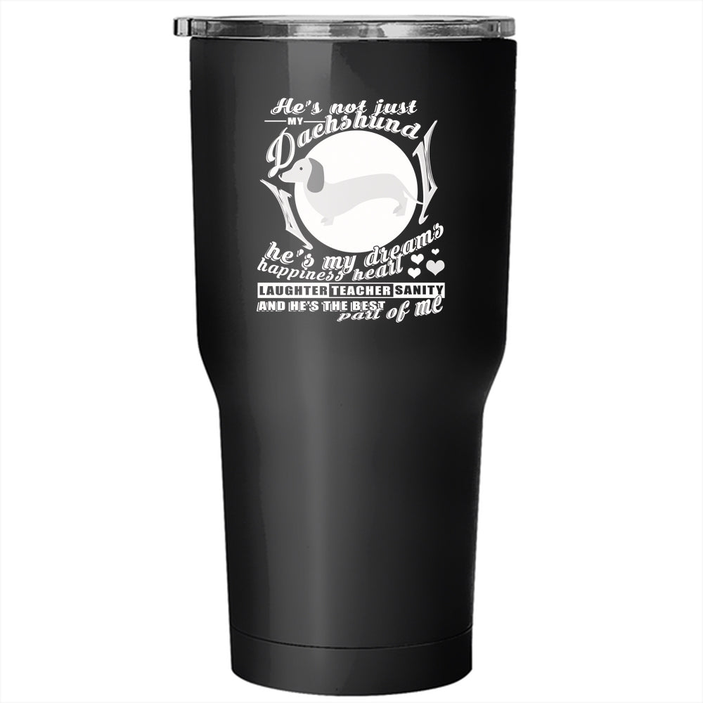 He's Not Just My Dachshund Tumbler 30 oz Stainless Steel, He's My Dreams Happiness Heart Travel Mug