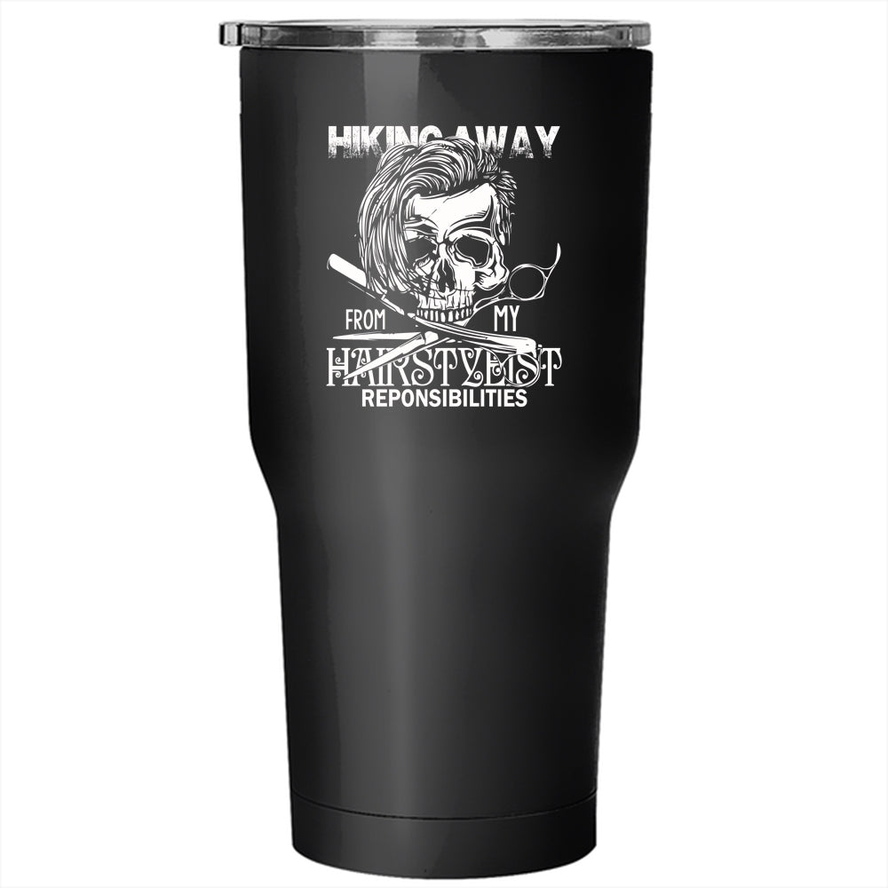 Hiking Away From My Hairstylist Tumbler 30 oz Stainless Steel, Cool Hair Stylist Travel Mug