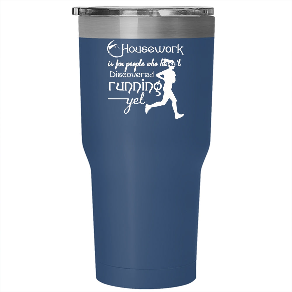 Housework Is For People Tumbler 30 oz Stainless Steel, Haven't Discovered Running Yet Travel Mug