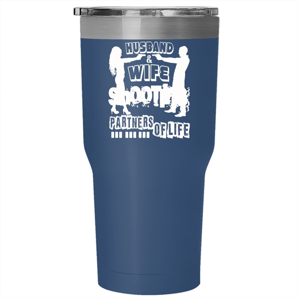 Husband And Wife Tumbler 30 oz Stainless Steel, Shooting Partners Of Life Travel Mug