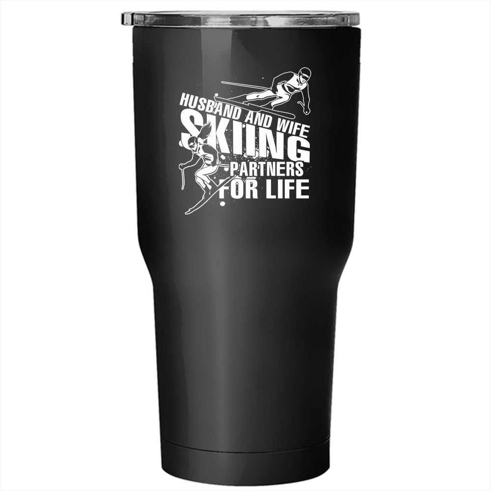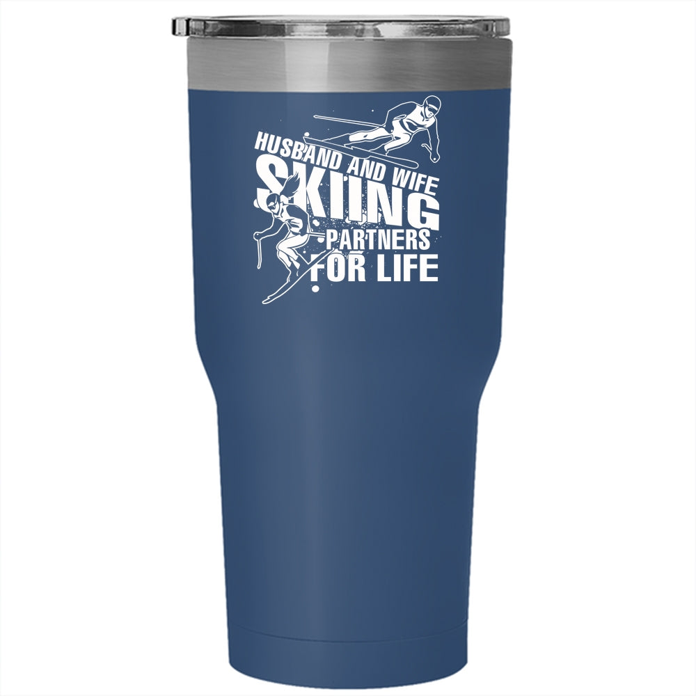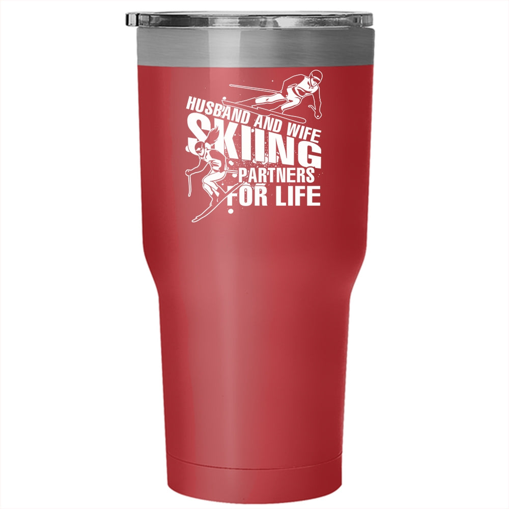 Husband And Wife Tumbler 30 oz Stainless Steel, Skiing Partners For Life Travel Mug