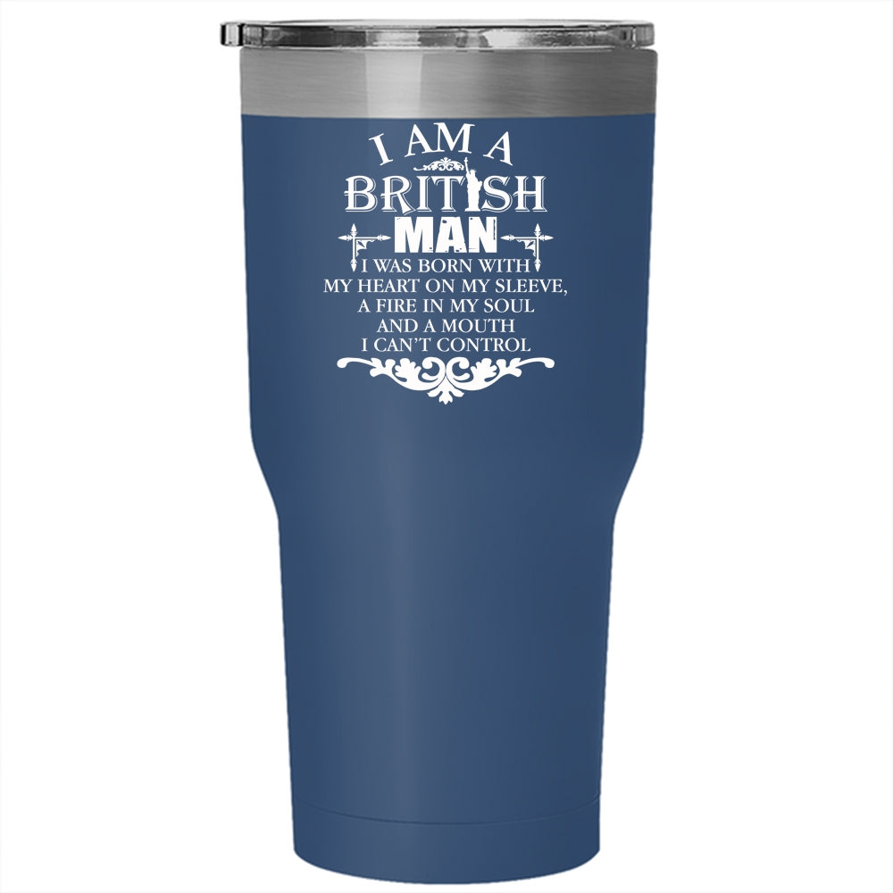 I Am A British Man Tumbler 30 oz Stainless Steel, I Was Born With My Heart Travel Mug