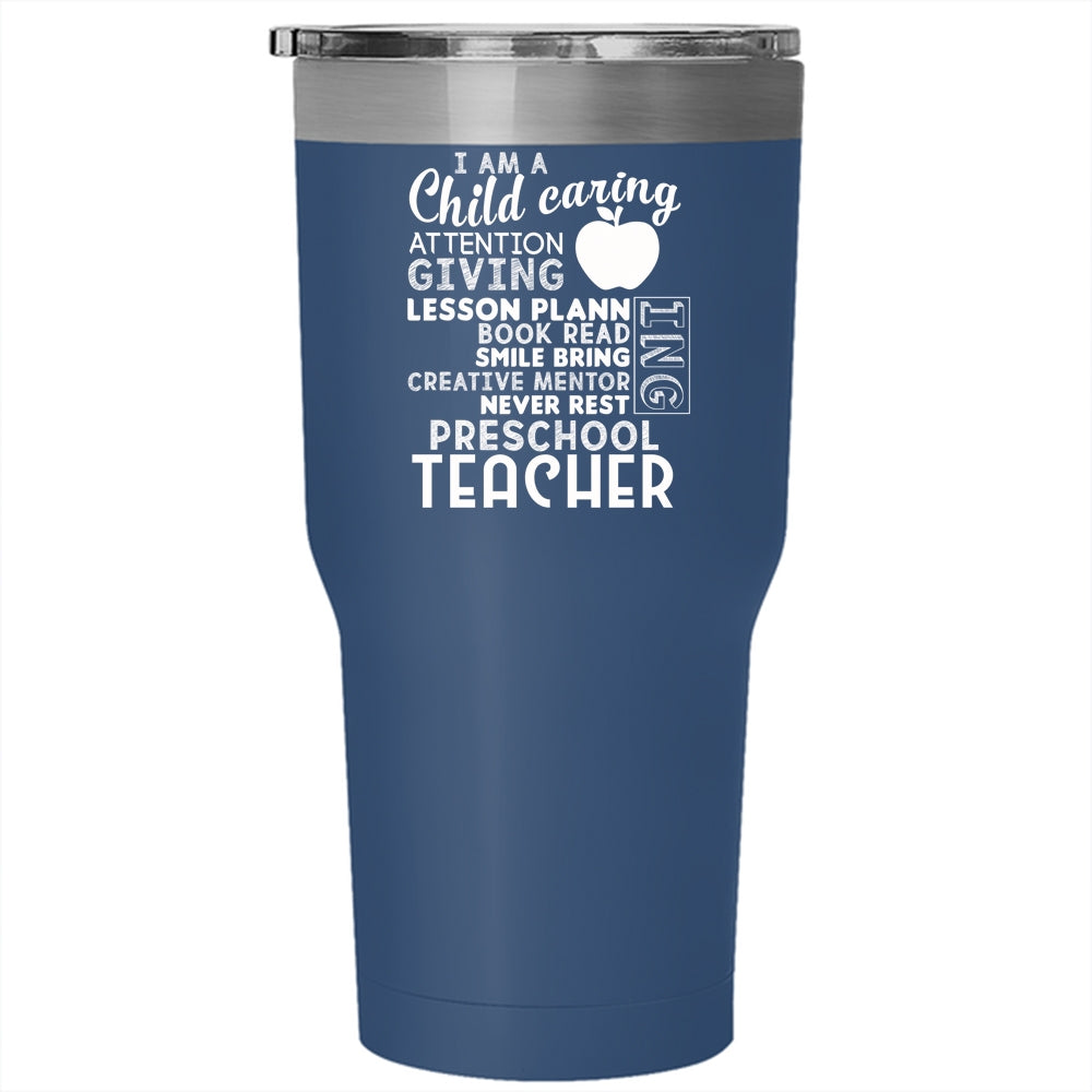 I Am A Child Caring Tumbler 30 oz Stainless Steel, I Am A Preschool Teacher Travel Mug