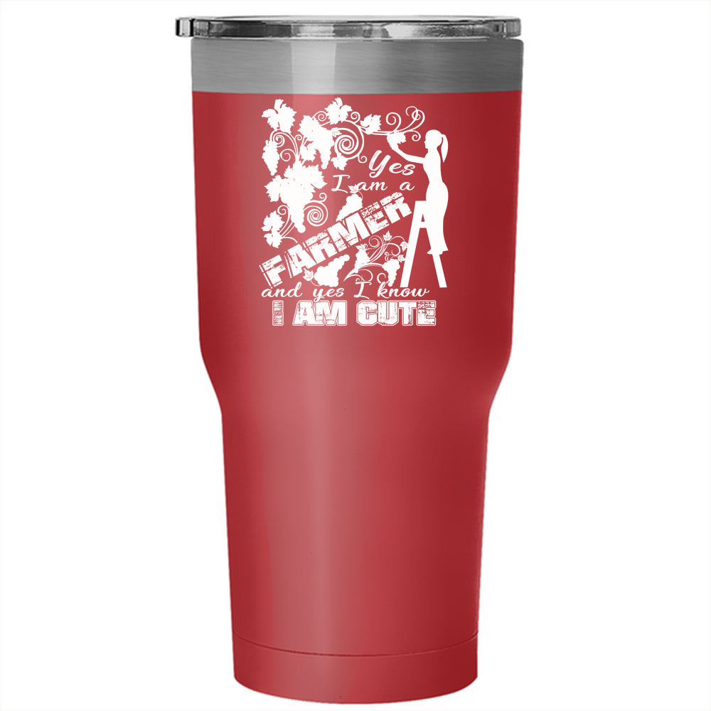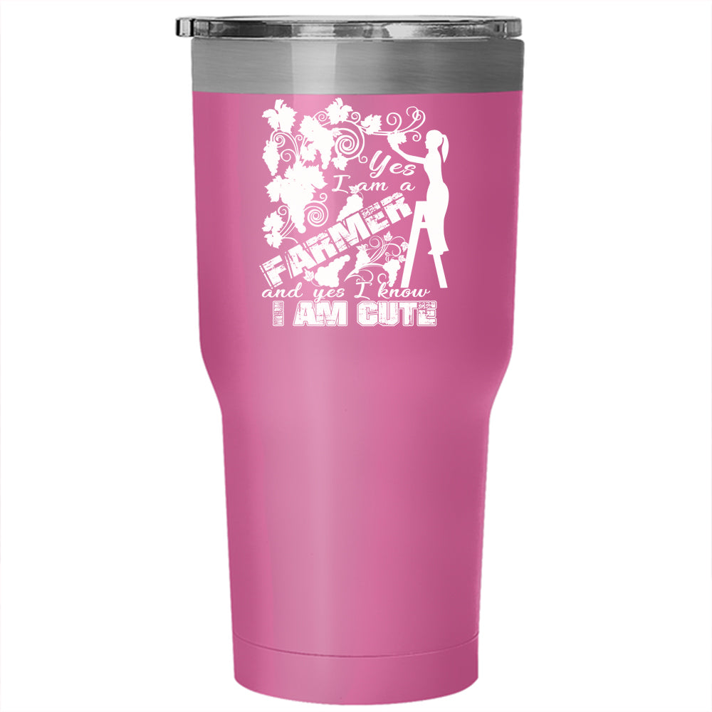 I Am A Farmer Tumbler 30 oz Stainless Steel, I Know I Am Cute Travel Mug