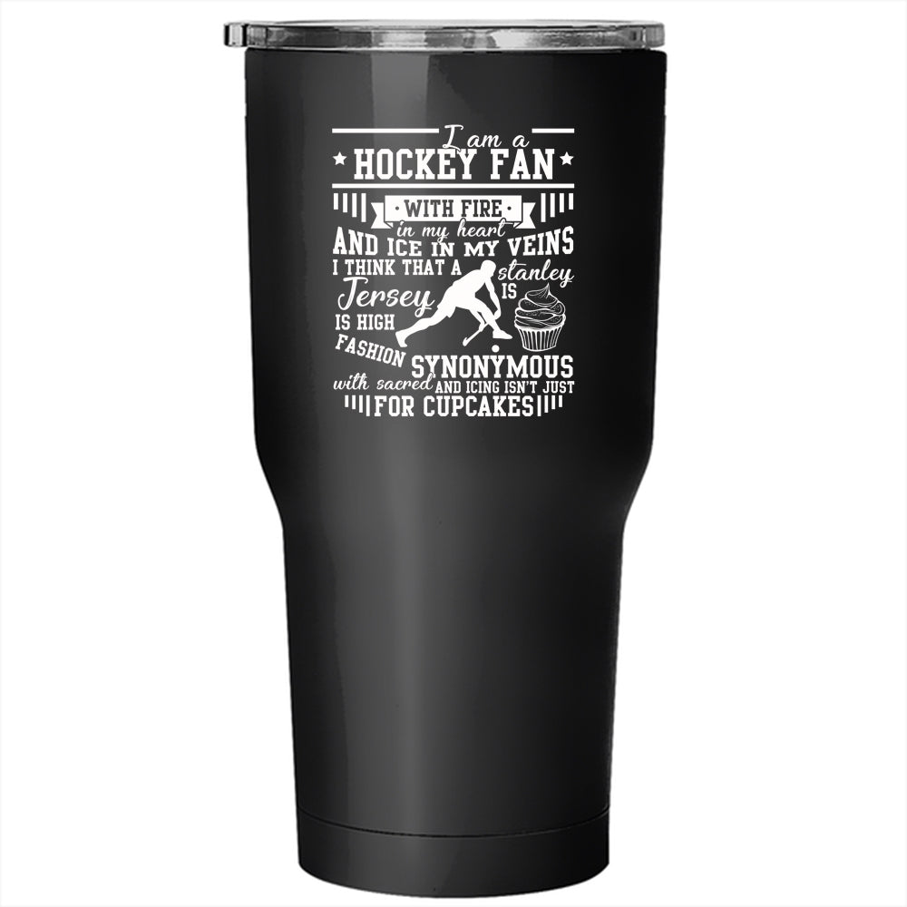 I Am A Hockey Fan With Fire In My Heart Tumbler 30 oz Stainless Steel, Sport Travel Mug