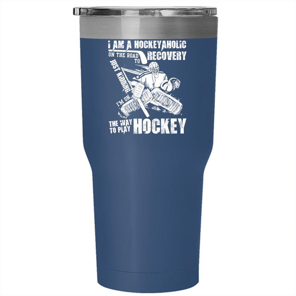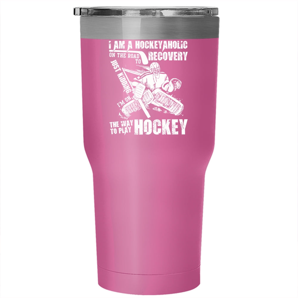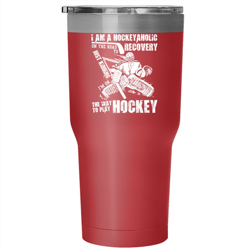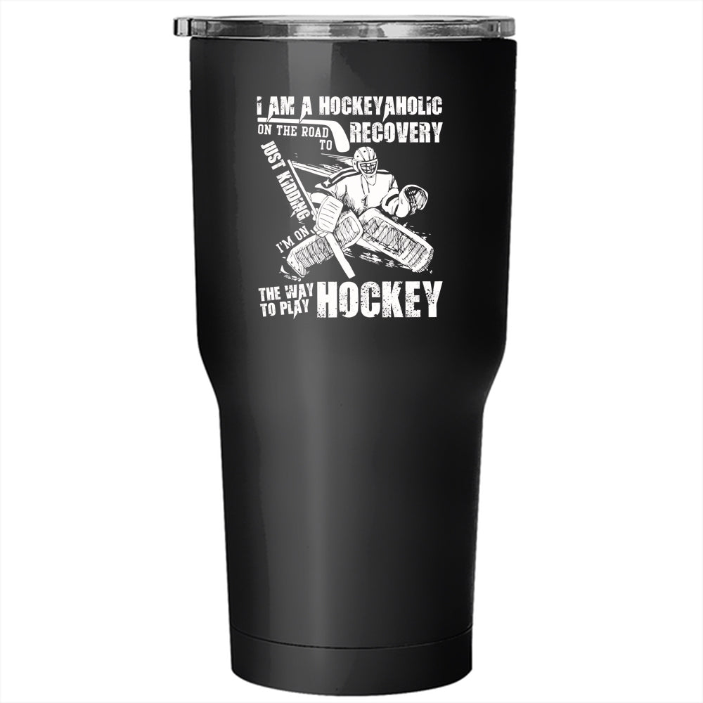 I Am A Hockeyaholic Tumbler 30 oz Stainless Steel, I Love Playing Hockey Travel Mug