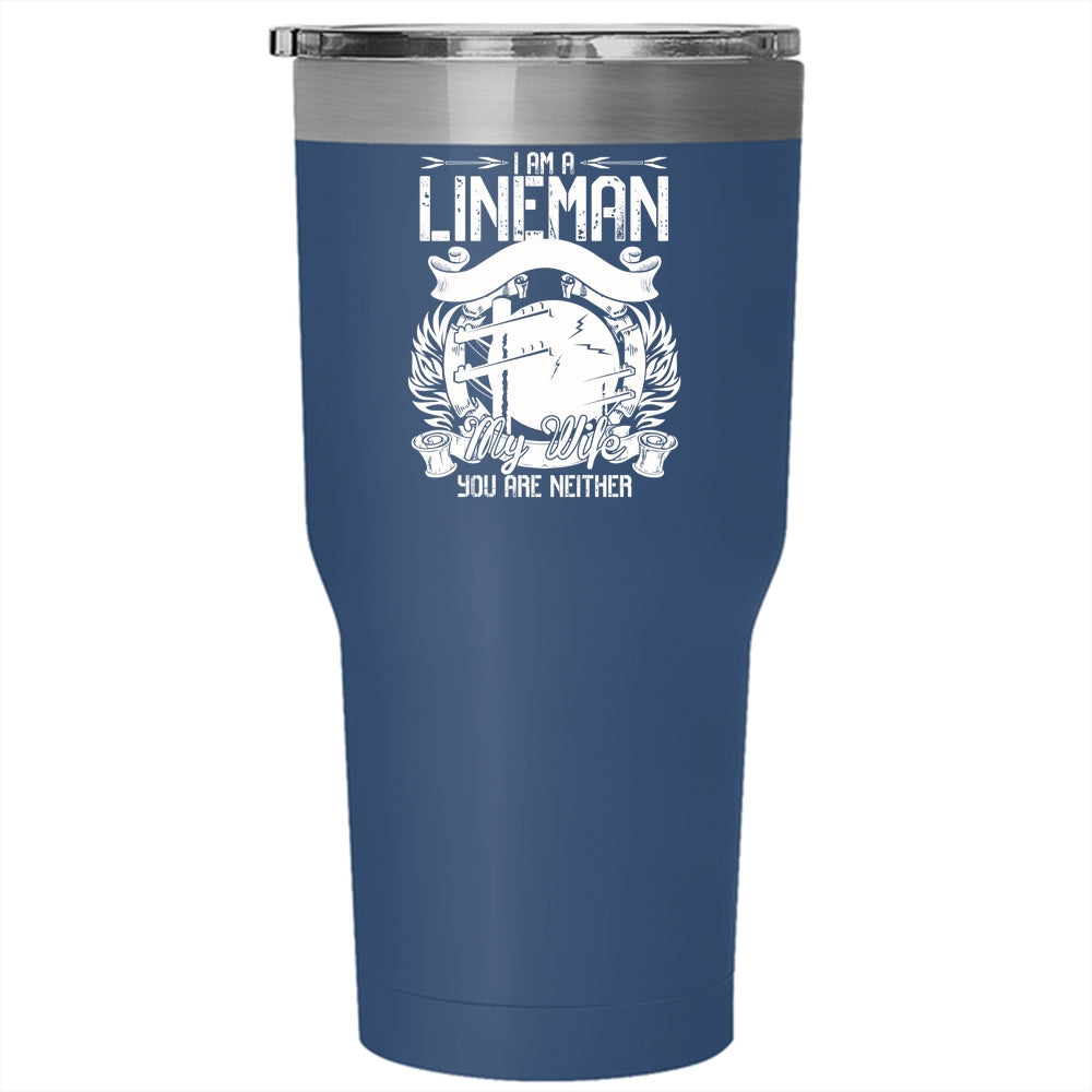 I Am A Lineman Tumbler 30 oz Stainless Steel, I Fear God And My Wife Travel Mug