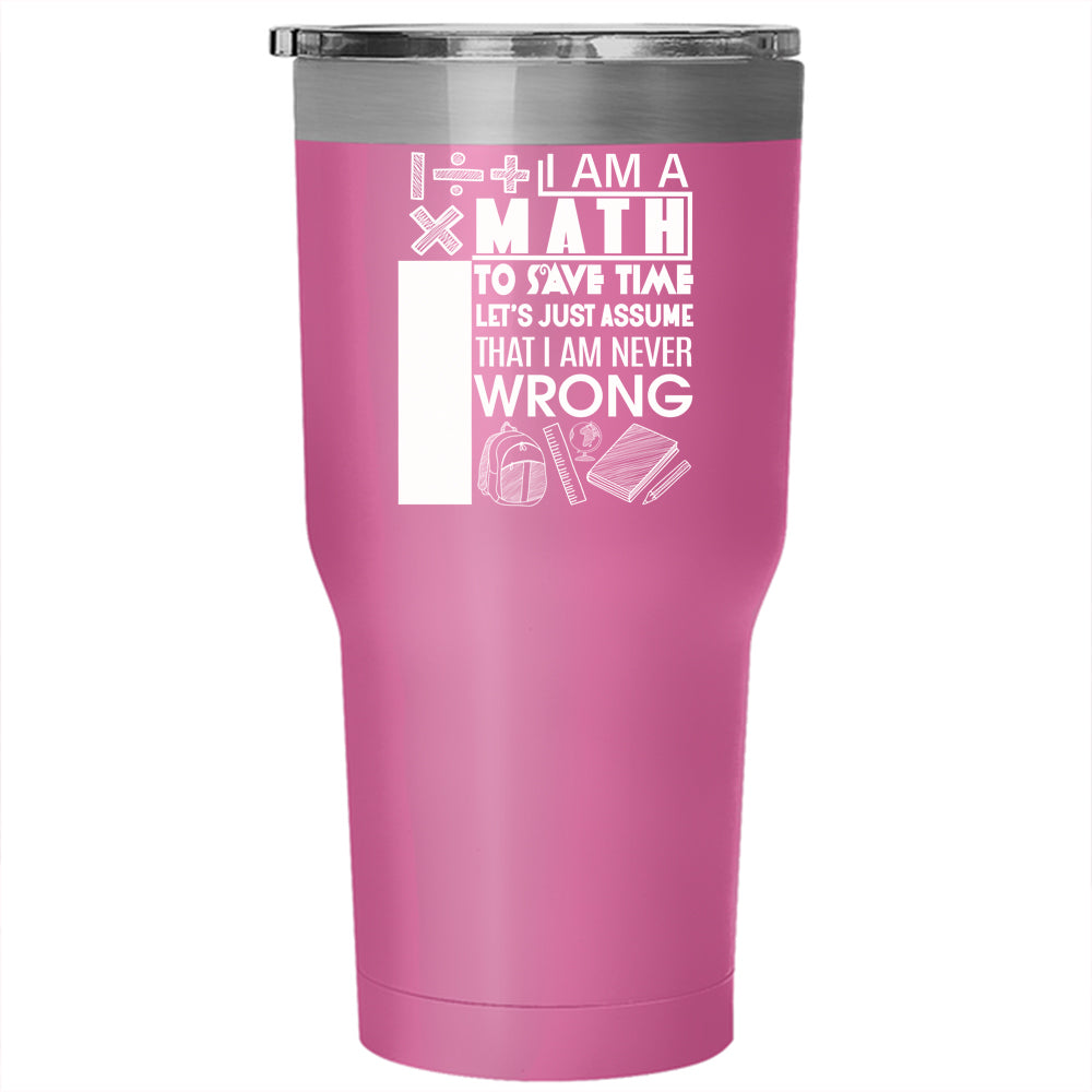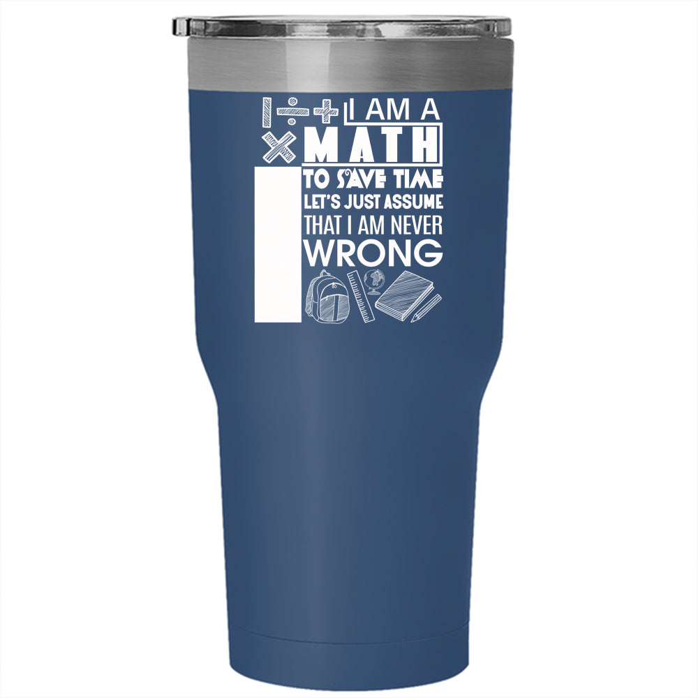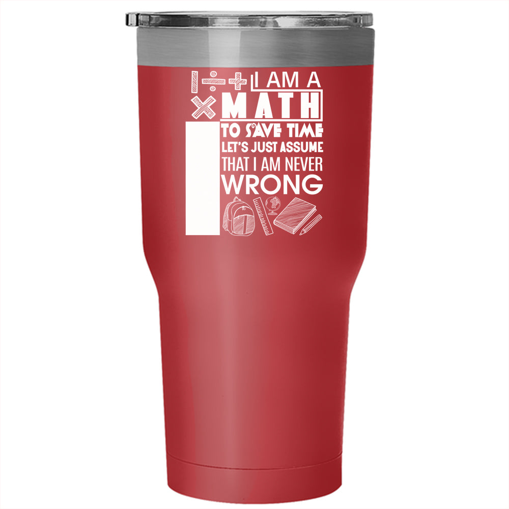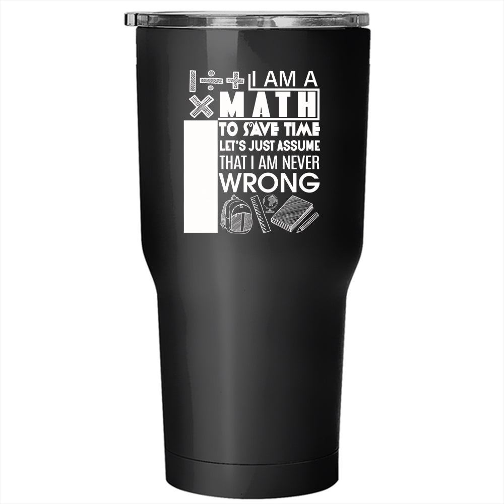 I Am A Math Teacher Tumbler 30 oz Stainless Steel, I Am Never Wrong Travel Mug