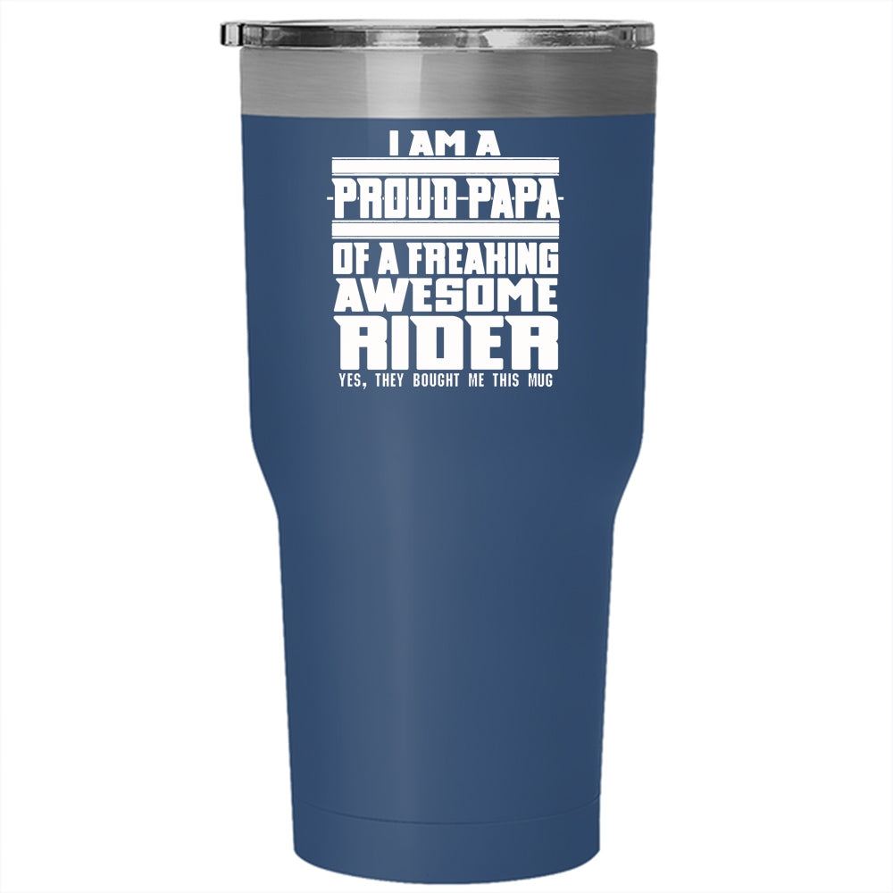 I Am A Proud Papa Of A Rider Tumbler 30 oz Stainless Steel, Awesome Rider Travel Mug