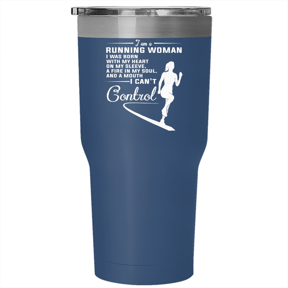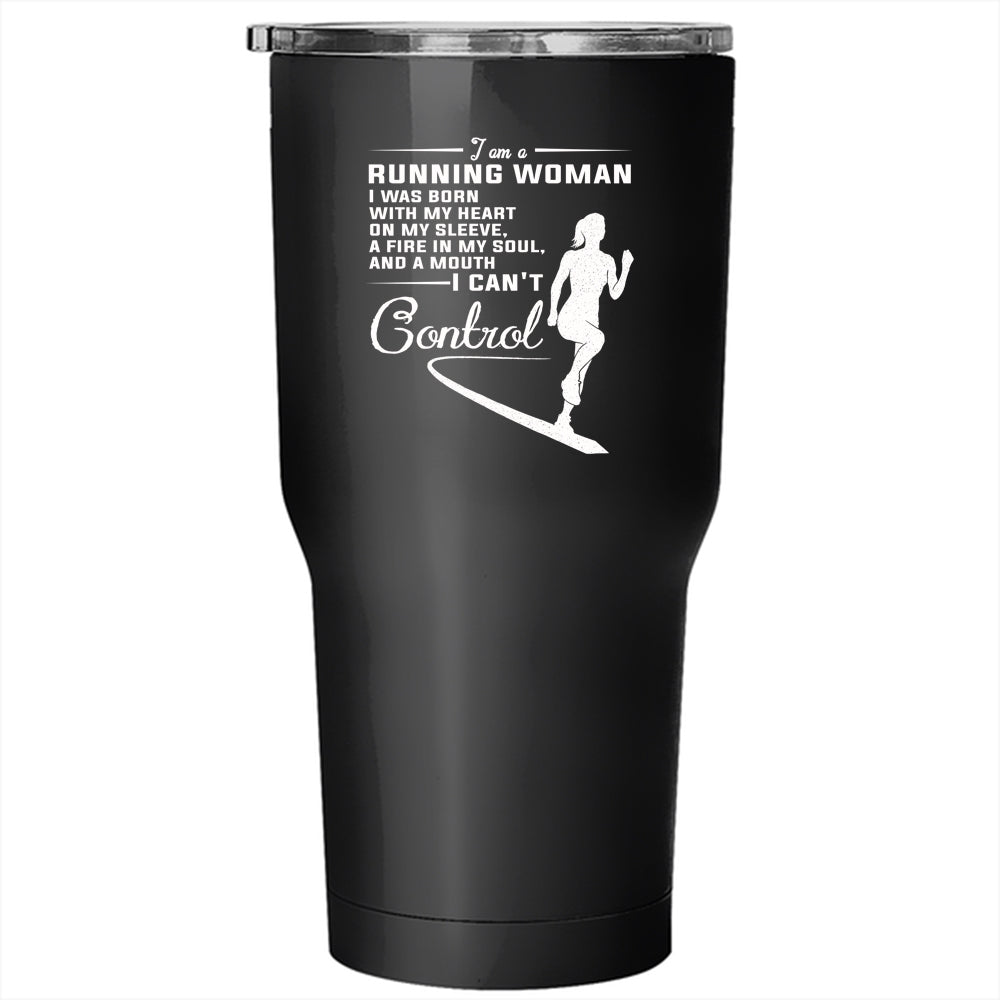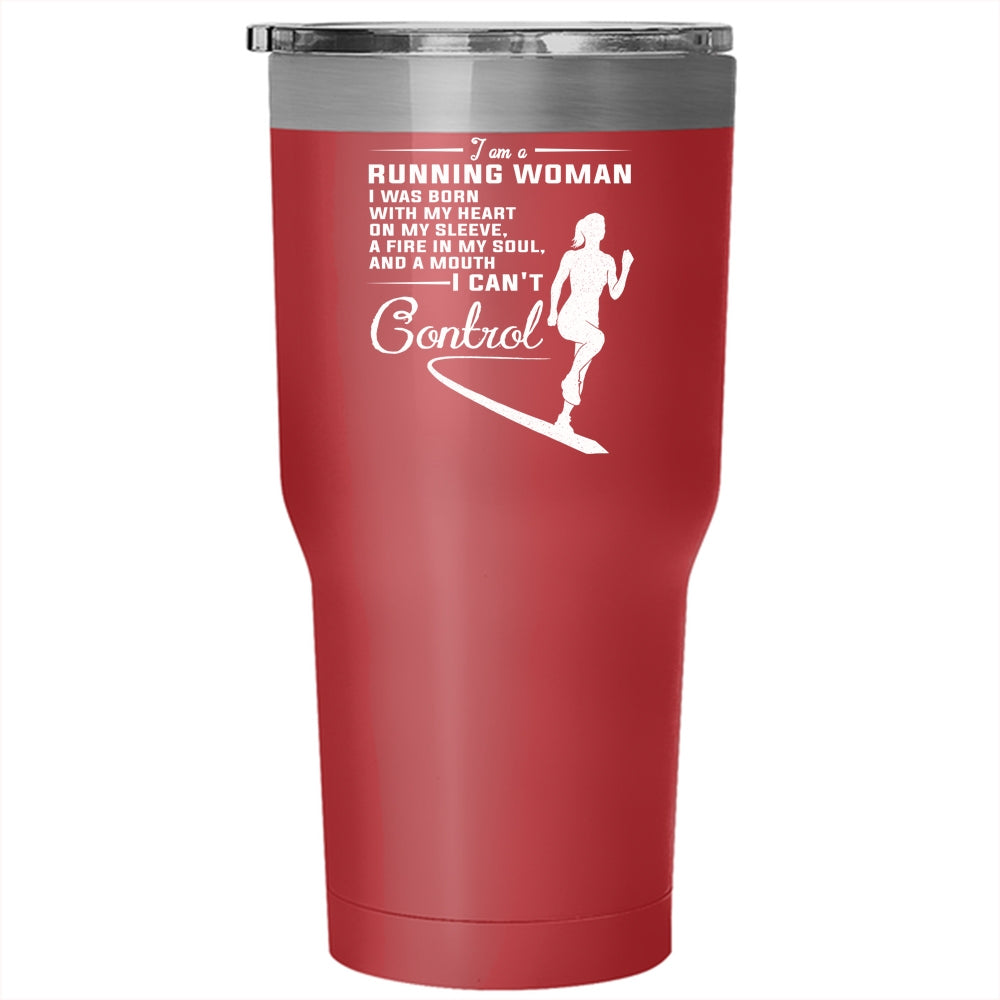 I Am A Running Woman Tumbler 30 oz Stainless Steel, I Was Born With My Heart On My Sleeve Travel Mug