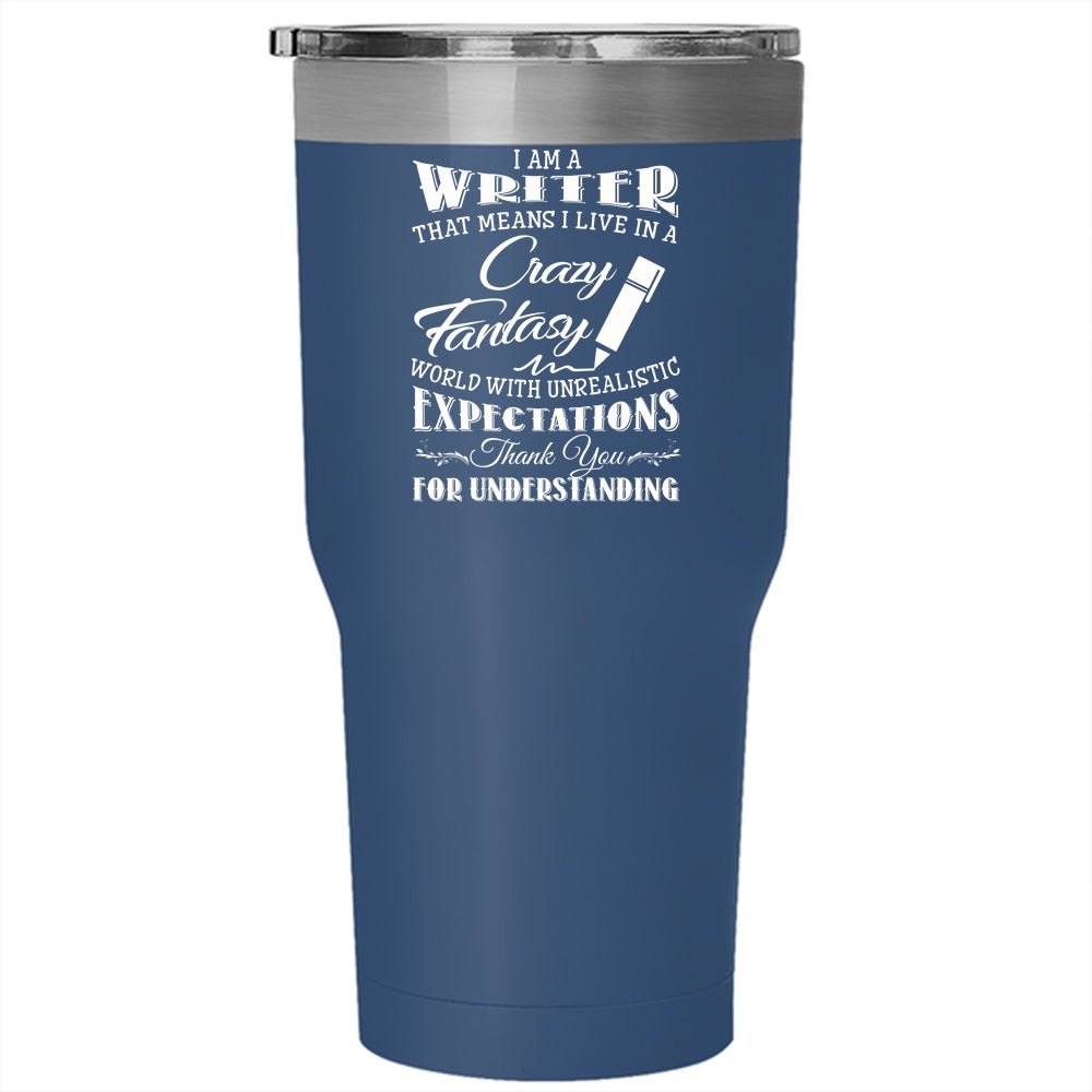 I Am A Writer Tumbler 30 oz Stainless Steel, I Live In Crazy Fantasy World Travel Mug
