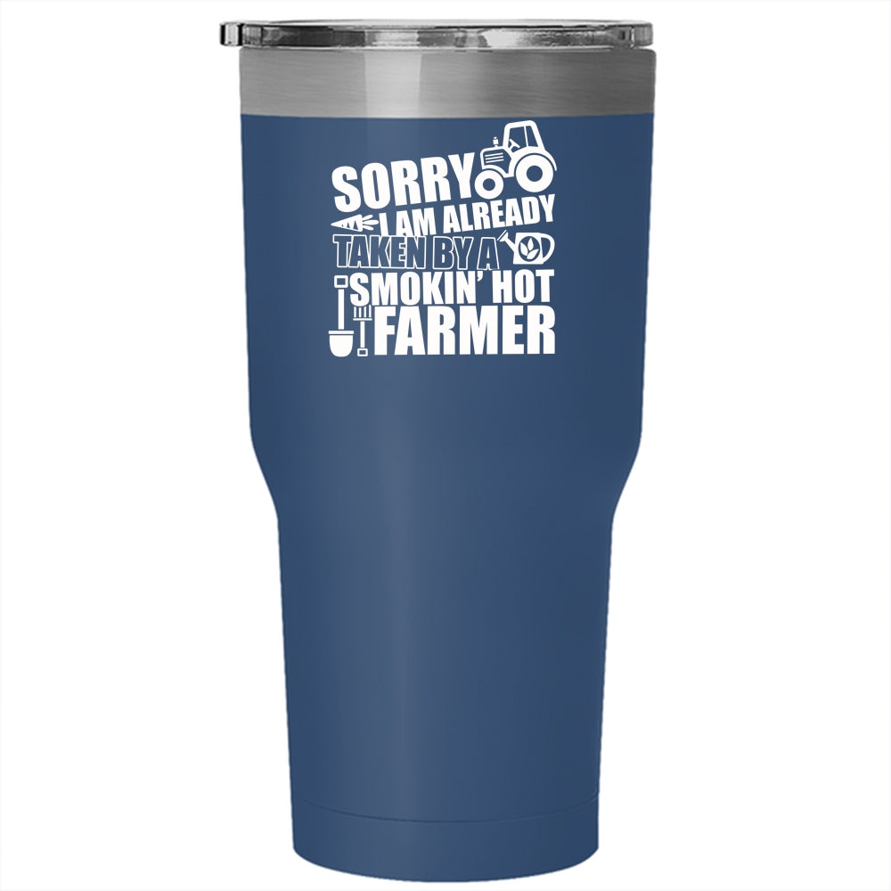 I Am Already Taken By A Hot Farmer Tumbler 30 oz Stainless Steel, Cute Farmer Travel Mug