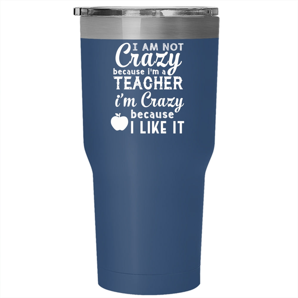 I Am Not Crazy Because I'm A Teacher Tumbler 30 oz Stainless Steel, I Like It Travel Mug